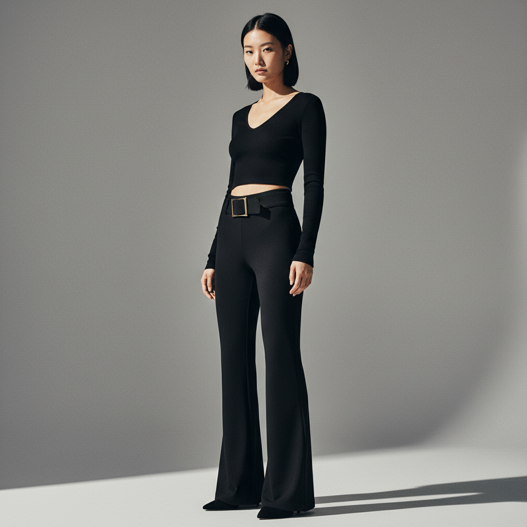 Opta per un look chic e moderno con i nostri pantaloni a vita bassa neri, perfetti per uno stile business casual. Il loro taglio lungo ed elegante ti assicura comfort per tutta la giornata. 🌟