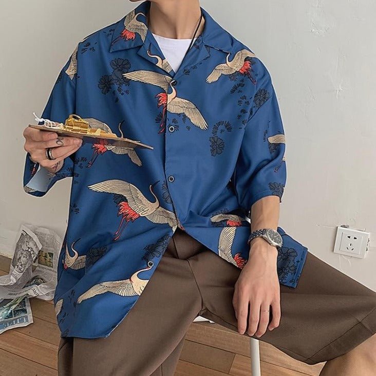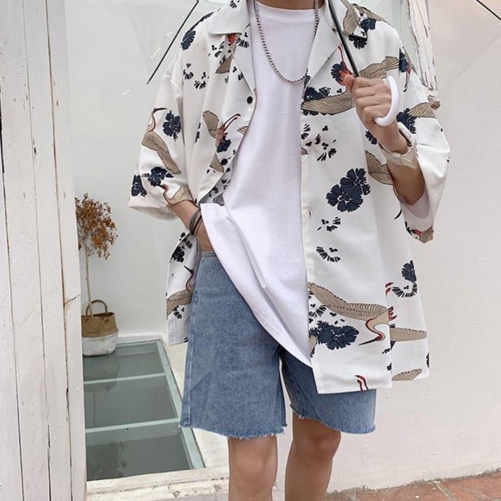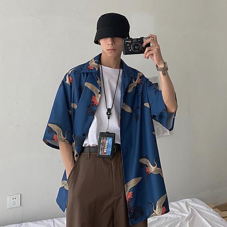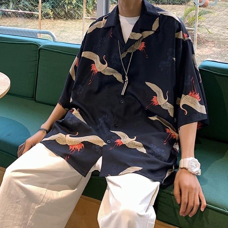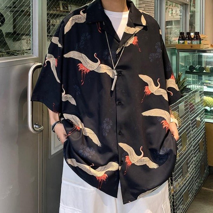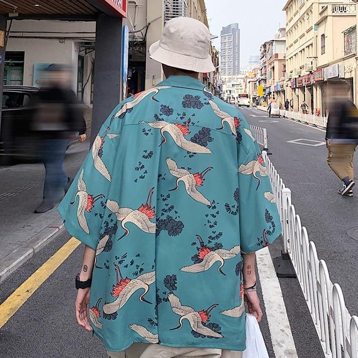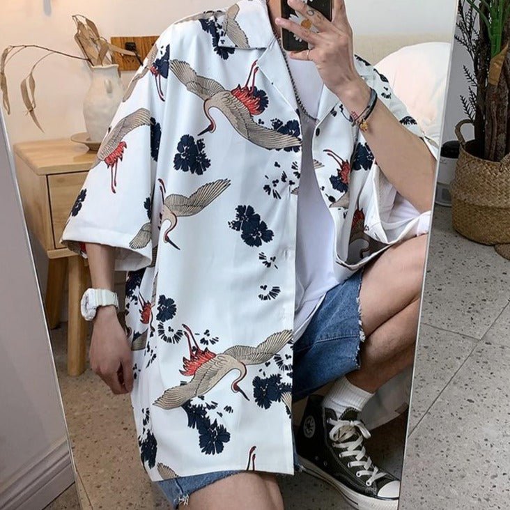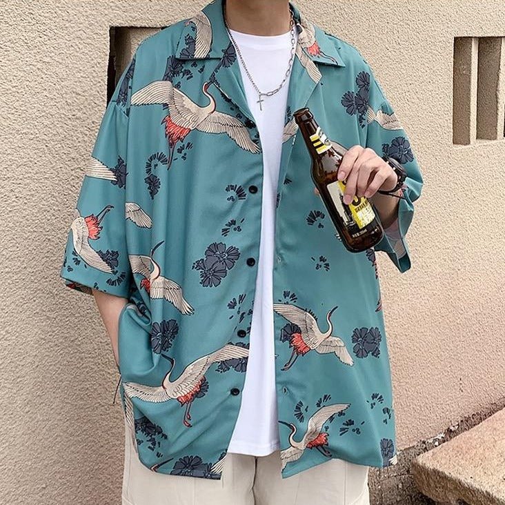 Se ami la moda asiatica, adorerai questa camicia con una gru. È un modello ispirato al Giappone che sta riscuotendo un grande successo in Corea del Sud. Questa camicia leggera è disponibile in diversi colori e ha le maniche corte.