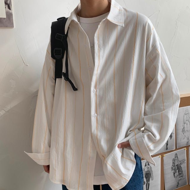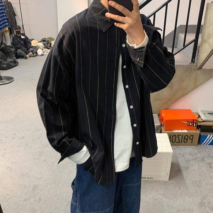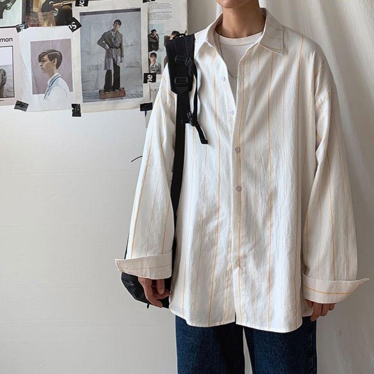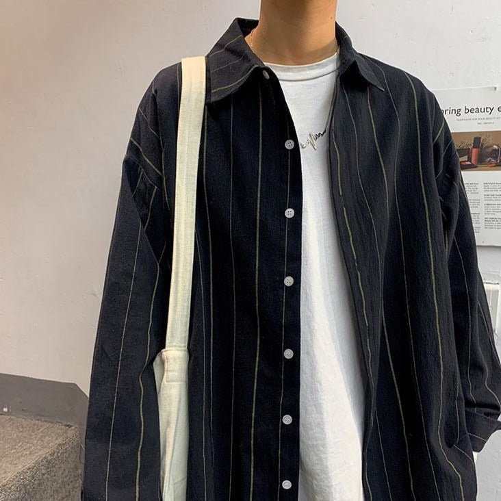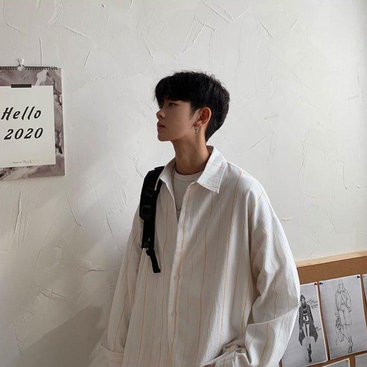 Se stai cercando una camicia leggera che sia popolare in Corea del Sud, ecco un modello a righe sottili che ti piacerà. Questa camicia coreana è perfetta per un look di tendenza ispirato alla moda K-Pop. È leggera, perché in cotone e poliestere.