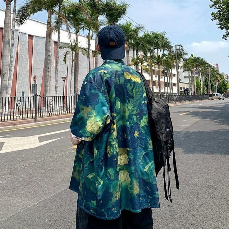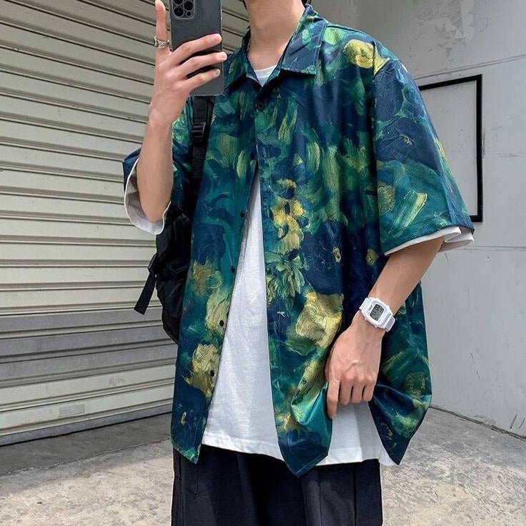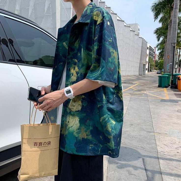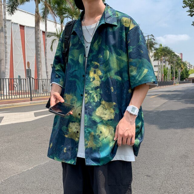 Ecco una camicia ideale per chi ama la natura. Le sfumature di verde e giallo sono molto alla moda in Corea del Sud. È una camicia molto di tendenza che può essere indossata sopra altri capi. Se cerchi una camicia leggera, è ideale.
