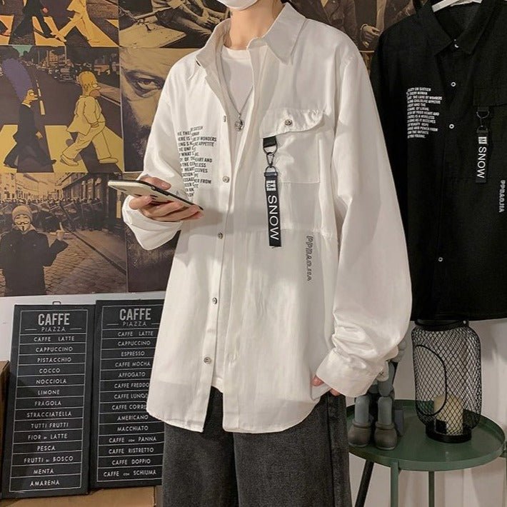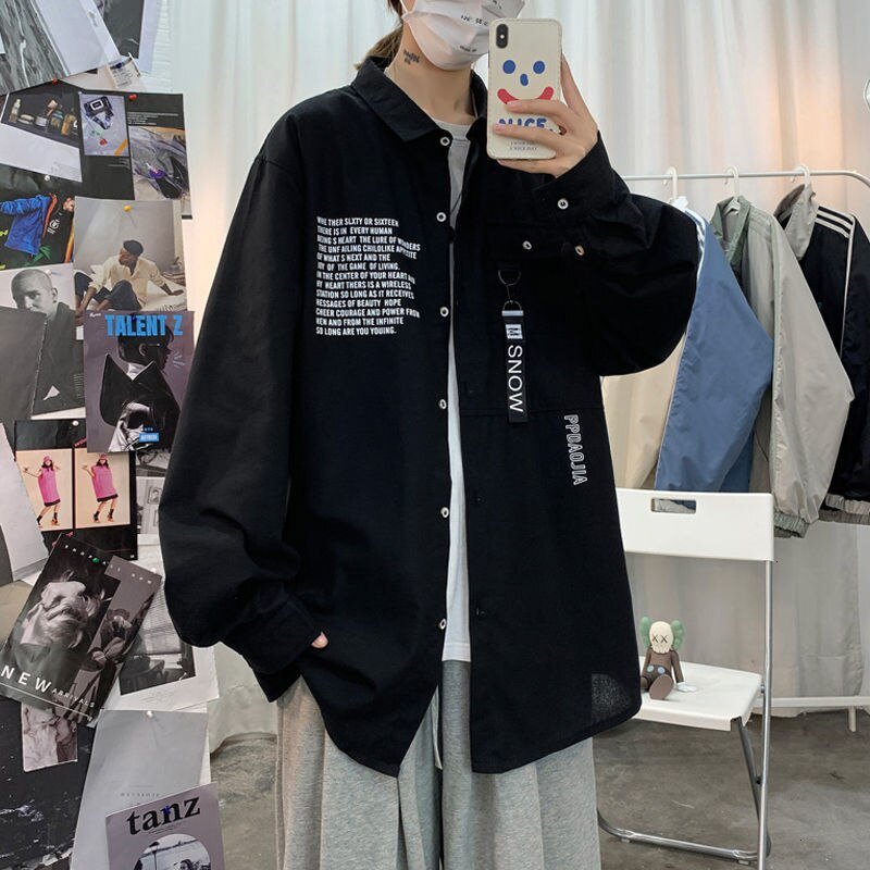 Questa camicia è realizzata in cotone e poliestere. È molto morbida e piacevole da indossare. Se ami la moda coreana e i vestiti bianchi e neri, questa bellissima camicia è fatta per te. Ha un piccolo nastro con la scritta "Snow", che significa "neve".