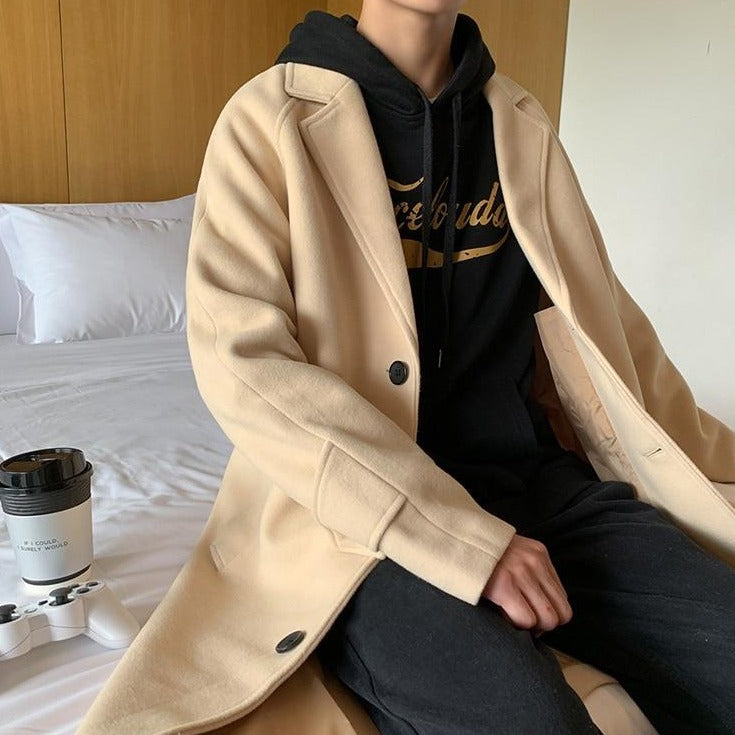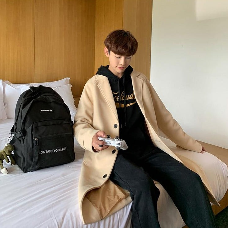 Tutti i giovani coreani possiedono un cappotto lungo. È un grande classico della moda coreana, poiché è una giacca che può essere indossata per ogni occasione. Questo modello è disponibile in beige e nero. È molto pratico e morbido da indossare.