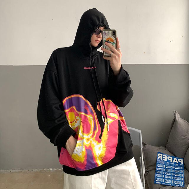 Ti piacciono le viste a infrarossi? Ami la moda coreana? Ecco una felpa con cappuccio ampia e confortevole, molto di moda a Seoul. Questa felpa è stampata con una foto termica. È molto comoda e sta avendo un grande successo tra i giovani coreani.