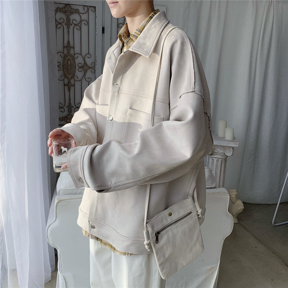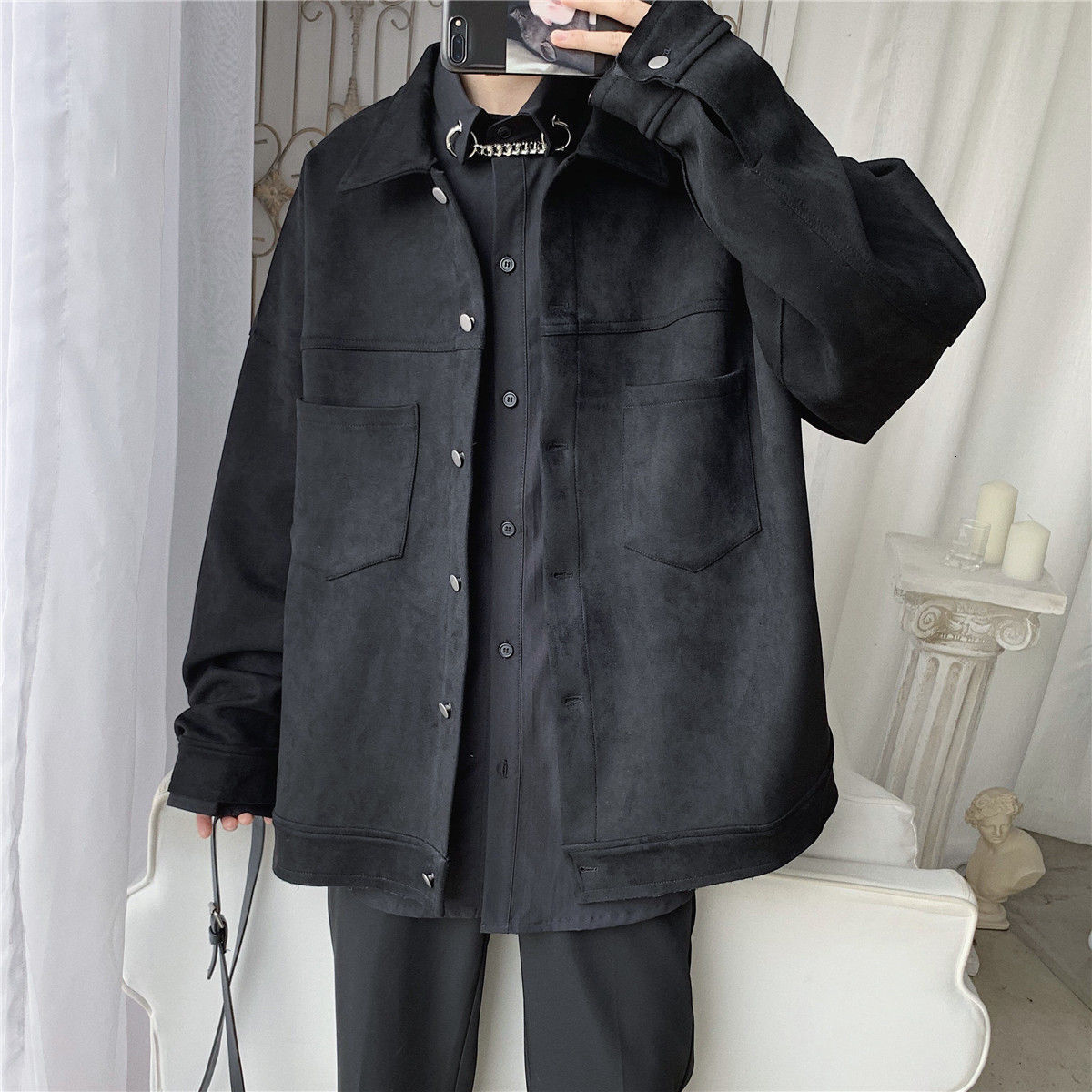 Una giacca molto trendy in Corea del Sud con camoscio sintetico.