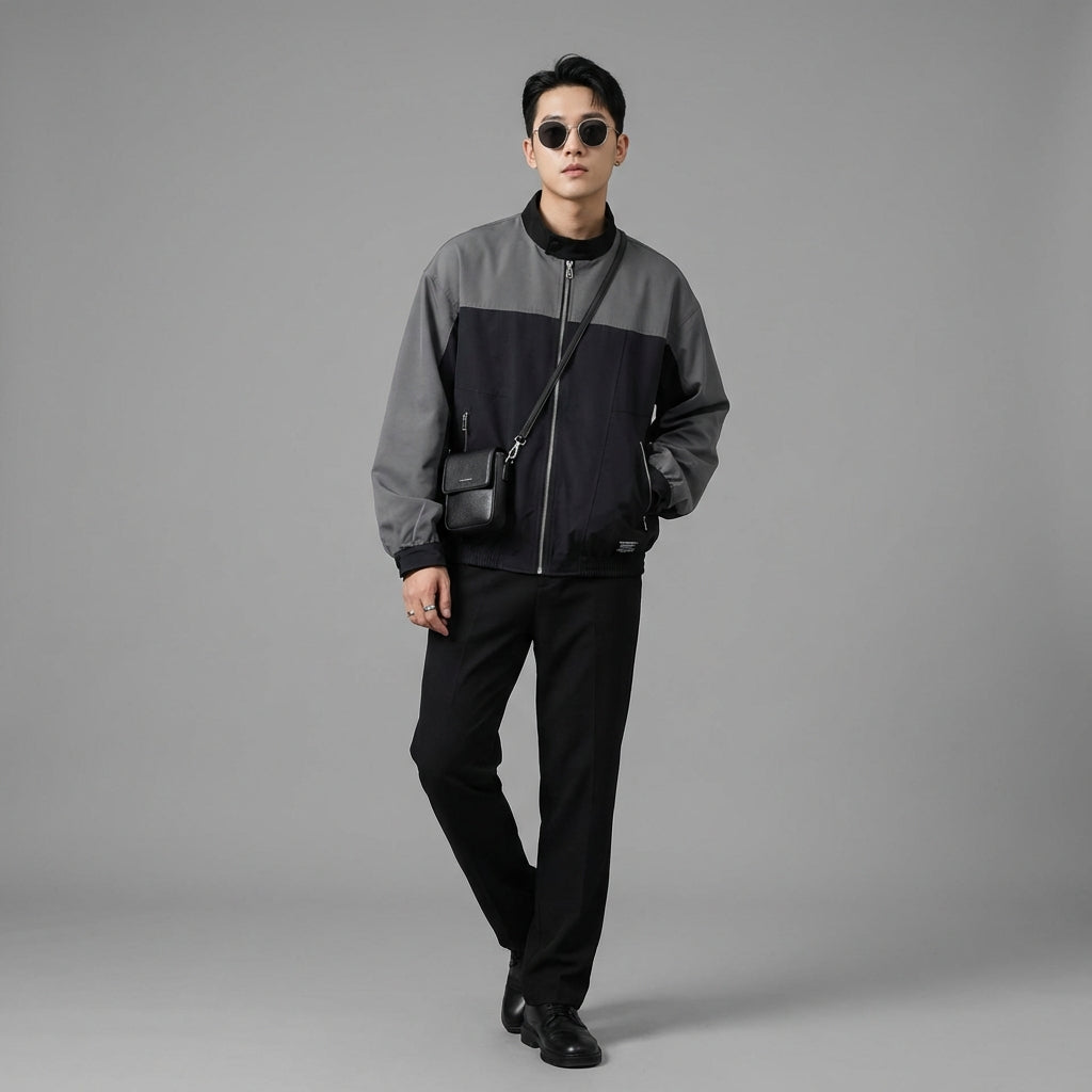 Veste utility noire homme col montant streetwear - Koreanxwear