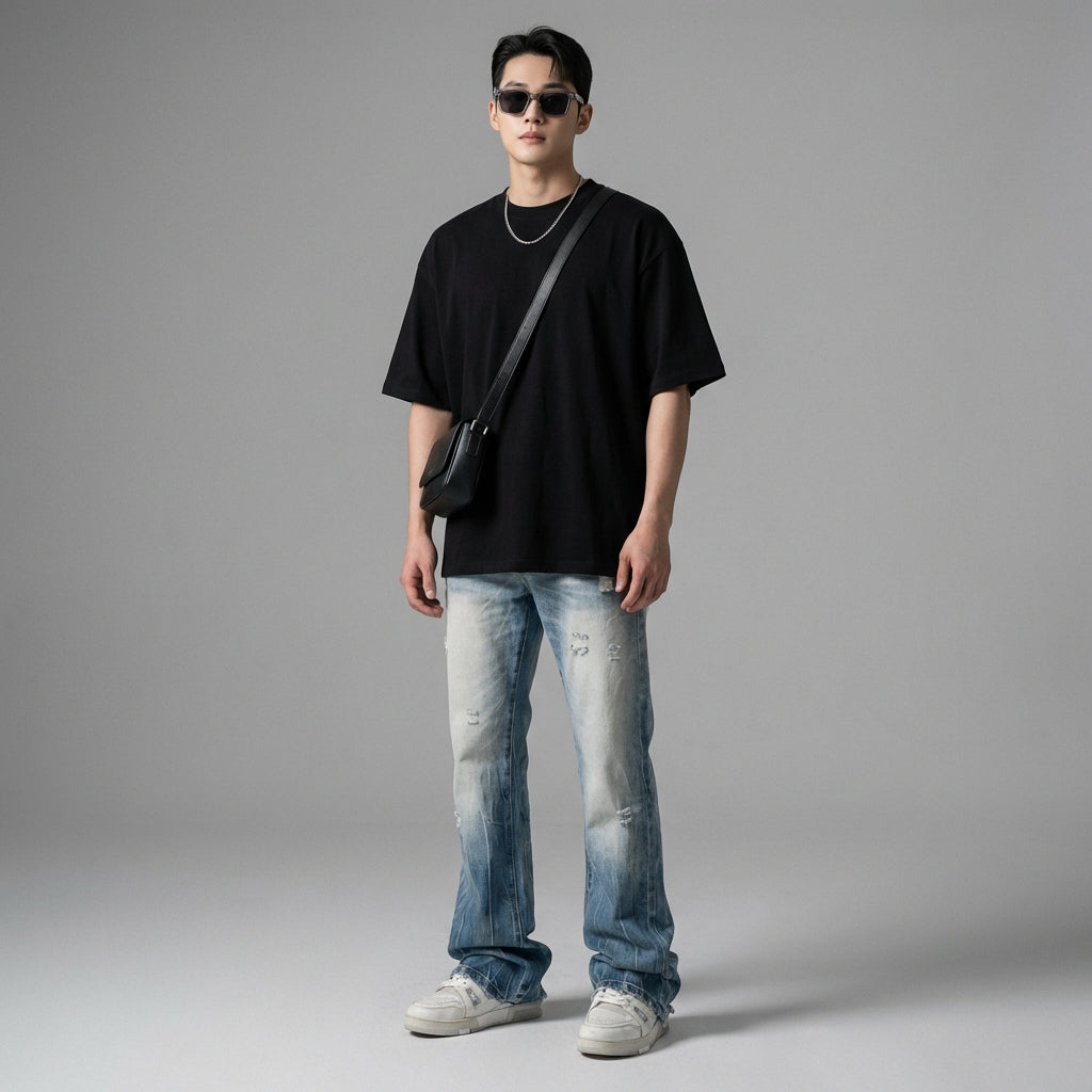 - Stile: Streetwear, K-fashion, Tendenza, Urbano. Questi jeans incarnano lo spirito della moda urbana, con un tocco di stile coreano per un look deciso e contemporaneo.