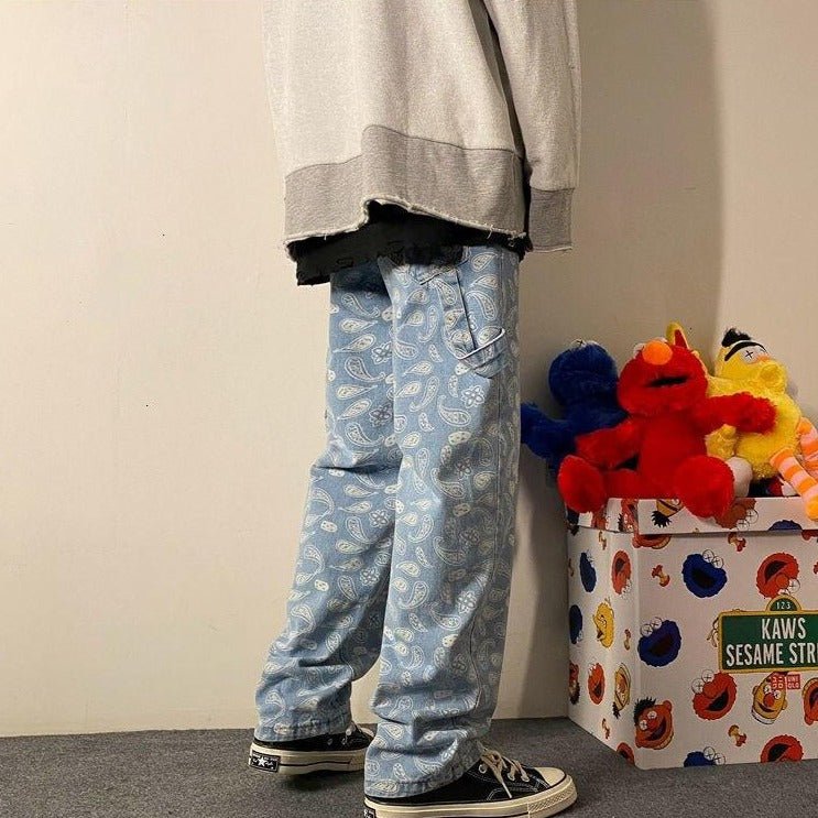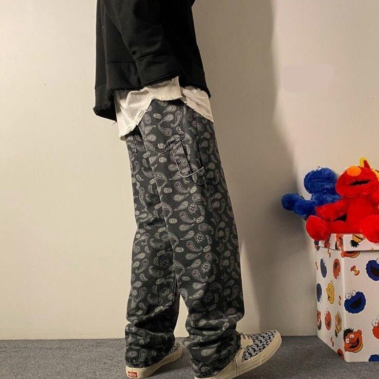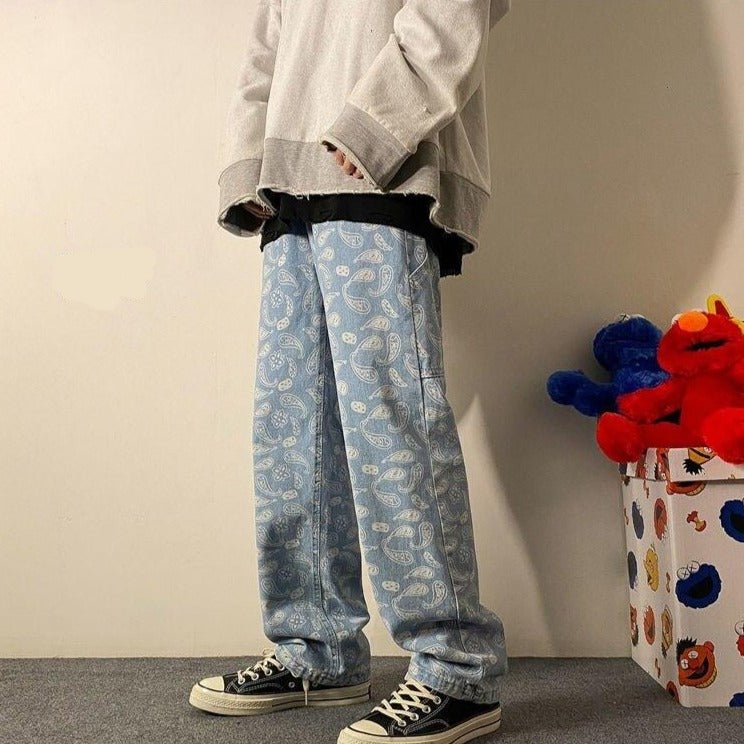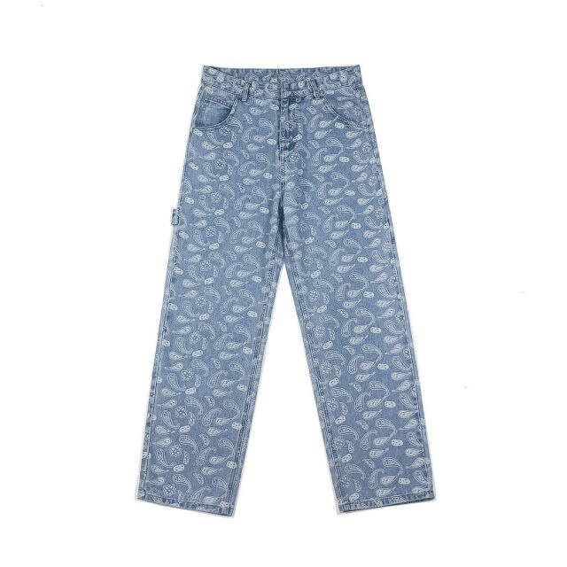 Questo jeans è un fantastico pantalone disponibile in blu e nero. È molto comodo e leggermente oversize per un migliore stile retrò. Il colore del jeans si alterna con motivi floreali effetto sbiadito. È un pantalone che si abbinerà perfettamente a un outfit classico.