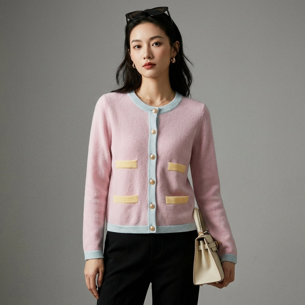 Adotta l'eleganza casual con il nostro cardigan in lana rosa, impreziosito da bottoni metallici per un tocco sofisticato. Il suo taglio corto e il design color block lo rendono un capo irrinunciabile per un look trendy e confortevole! 🌸