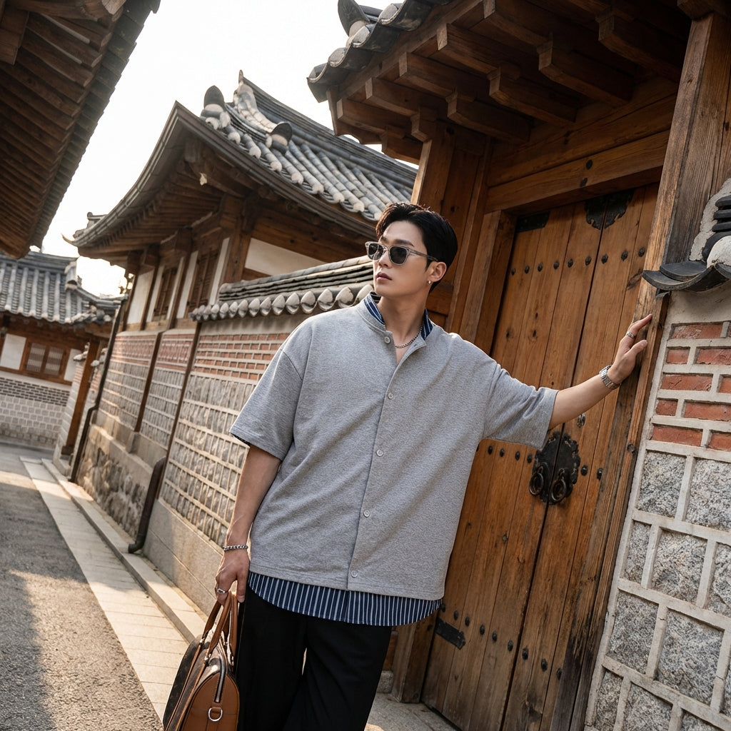 - Stile: Streetwear, Casual, K-fashion. Questa camicia incarna lo spirito della moda coreana casual, perfetta per un look urbano ed elegante.