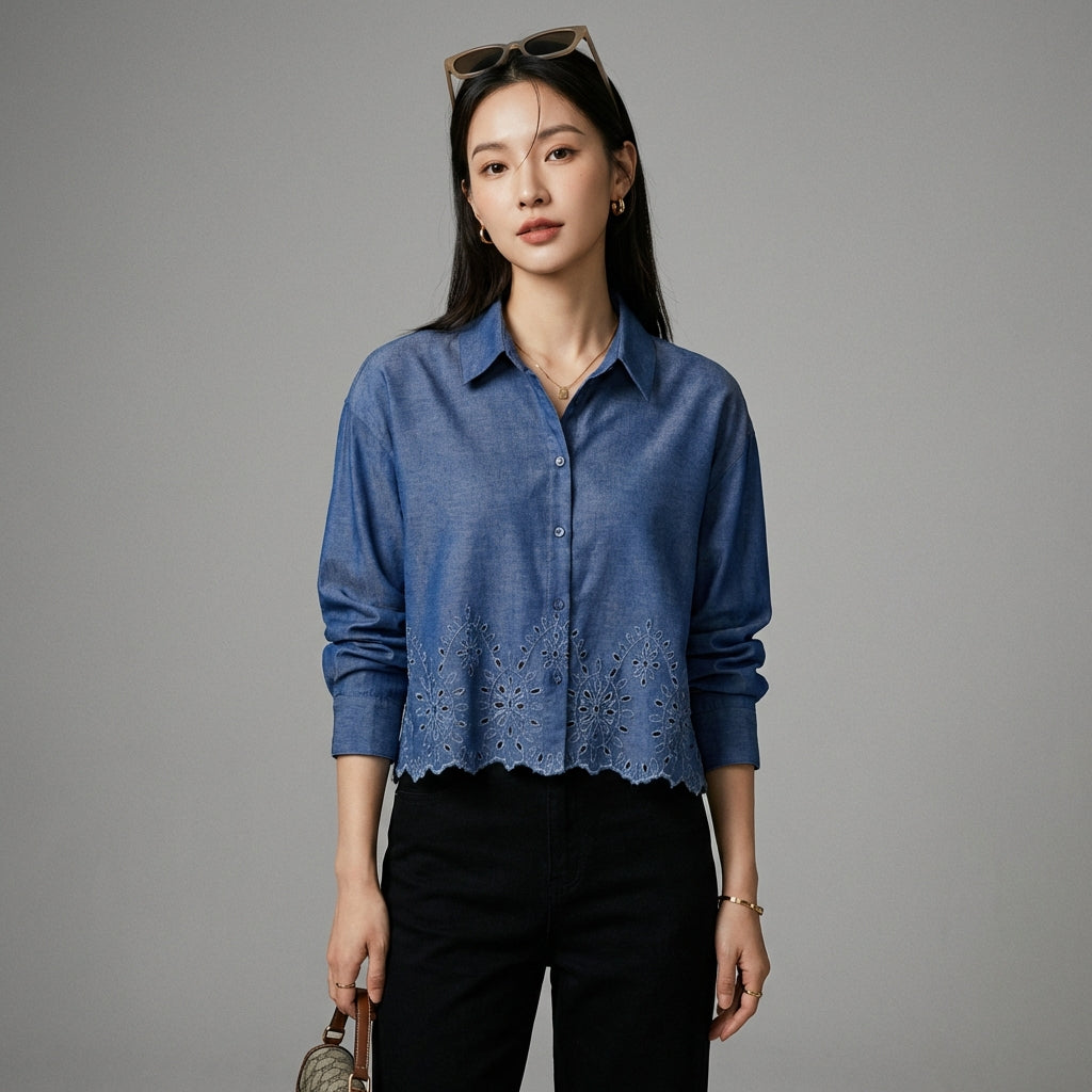 Adotta un look casual e alla moda con la nostra camicia corta in denim. Ideale per valorizzare qualsiasi outfit, aggiunge un tocco di stile urbano e moderno. Perfetta per le giornate di sole o le serate con gli amici! 💙