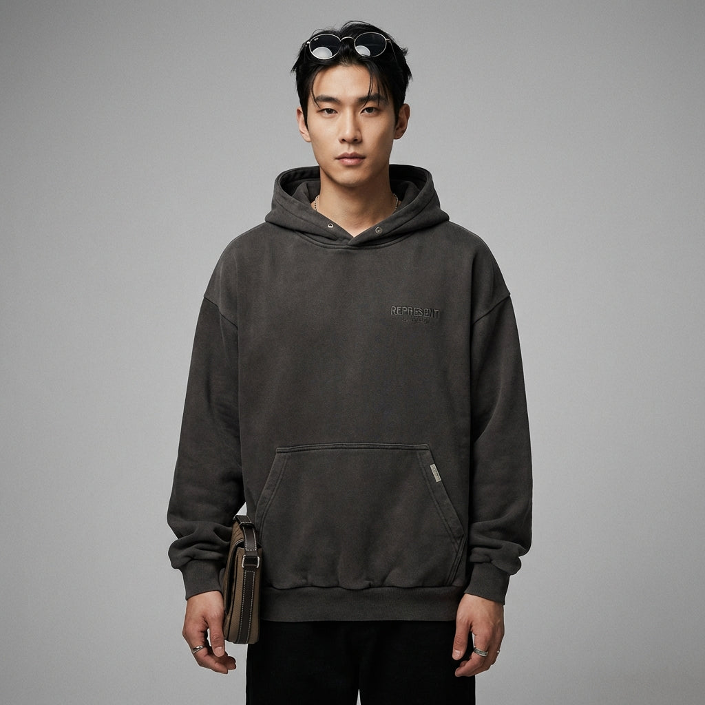 Adotta un look casual e alla moda con la nostra felpa con cappuccio oversize, realizzata in cotone spesso e lavato per un effetto vintage unico. Il suo piccolo logo ricamato discreto aggiunge un tocco di originalità a questo classico dello streetwear. Perfetta per uno stile urbano e confortevole! ✨