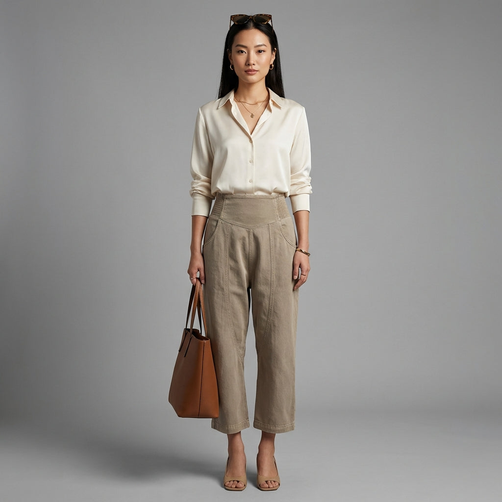 • Tipo: Pantaloni dritti, Cropped. Un taglio che valorizza la silhouette e mette in risalto le scarpe, ideale per un look contemporaneo.