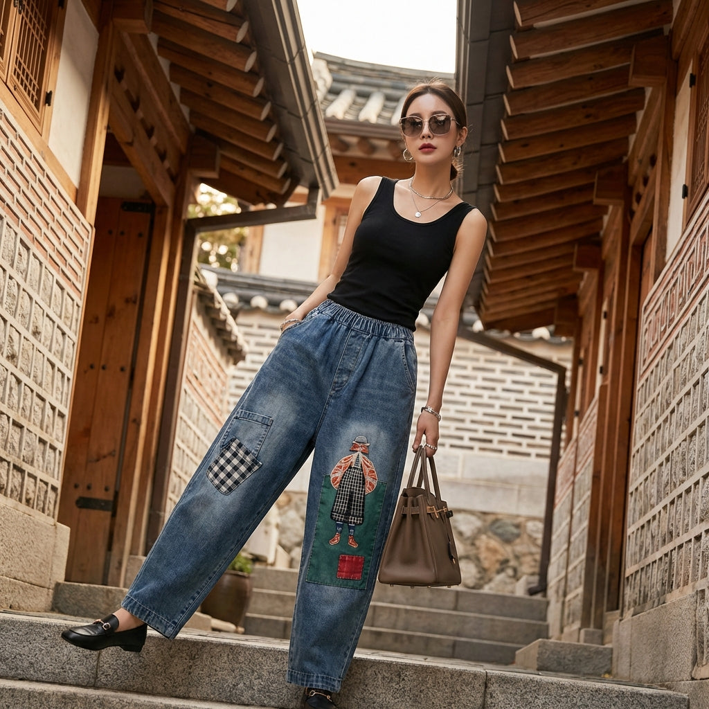 • Stile: Streetwear, Casual, K-fashion. Questi pantaloni incarnano lo stile urbano coreano, con un tocco artistico grazie ai ricami.