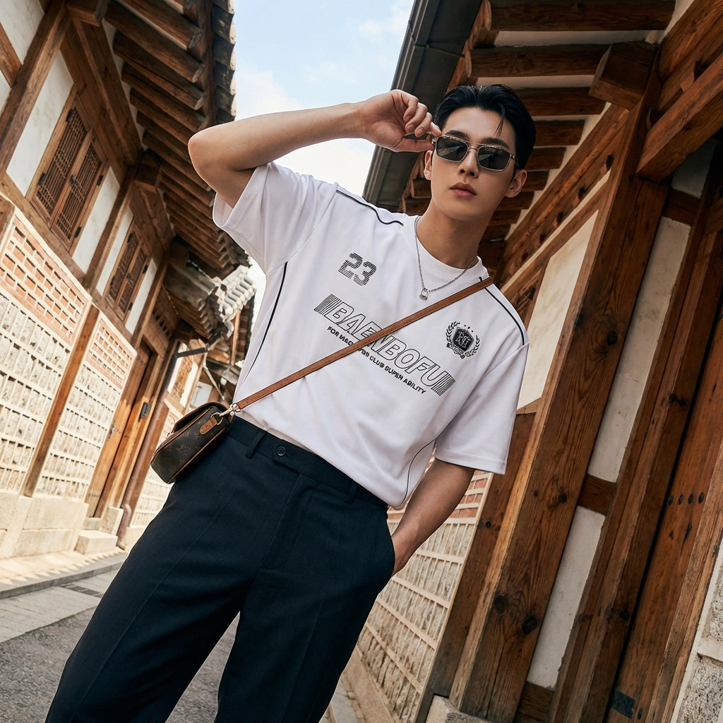 - Stile: Streetwear, Casual, K-fashion. Questa t-shirt incarna lo spirito della moda urbana coreana, con un taglio ampio e un design grafico.