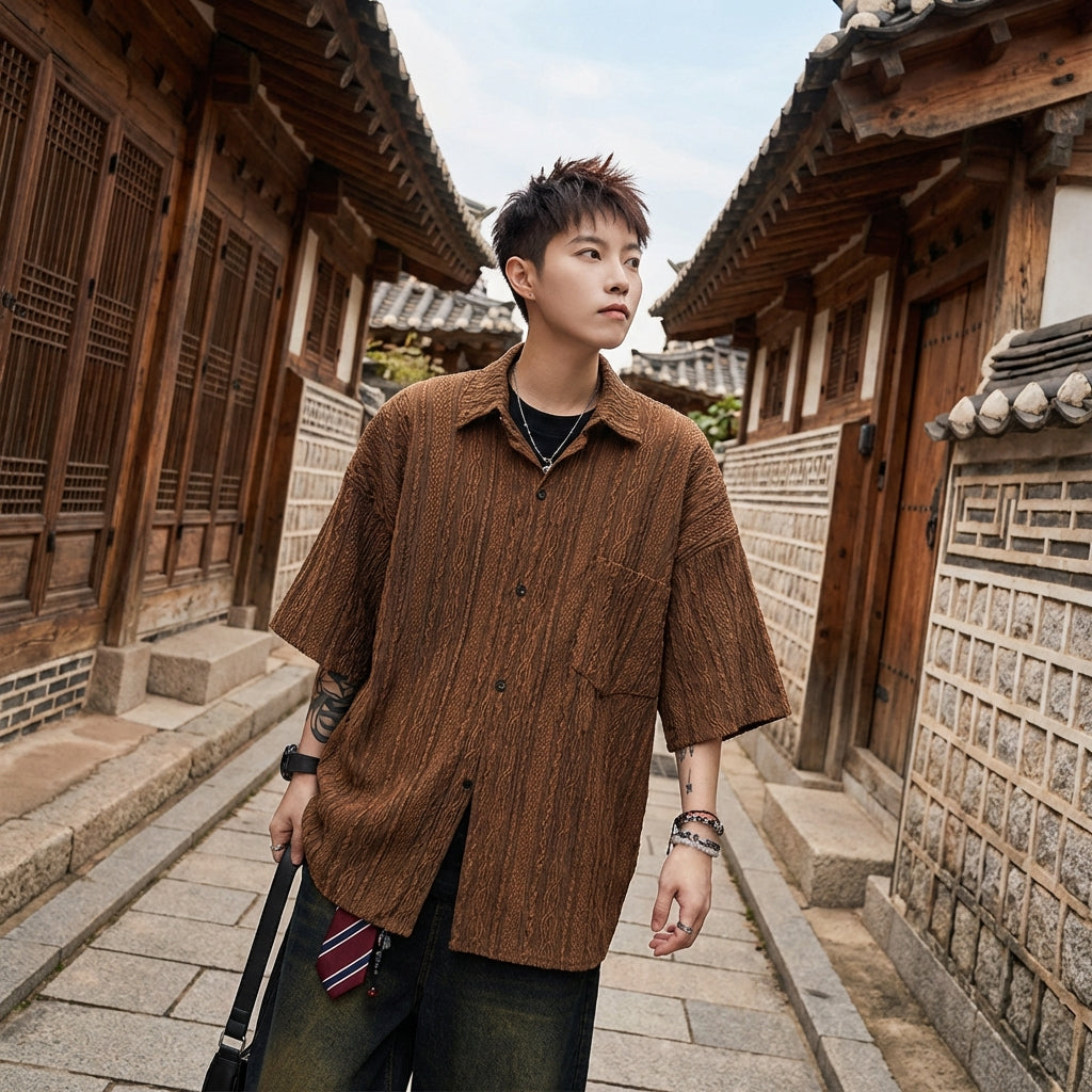 - Stile: Streetwear, K-fashion, Urbano, Casual. Questo top incarna lo spirito della moda coreana contemporanea, perfetto per un look audace e alla moda.