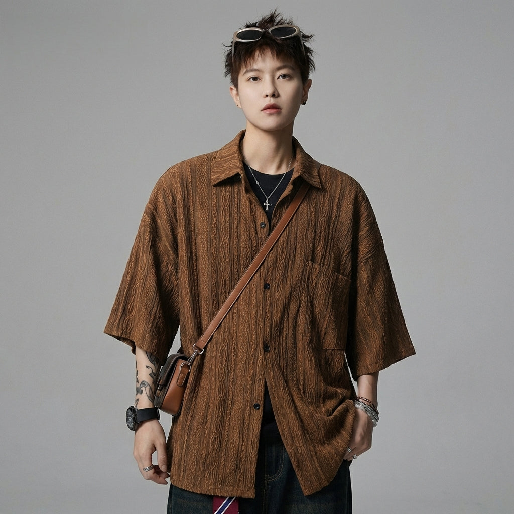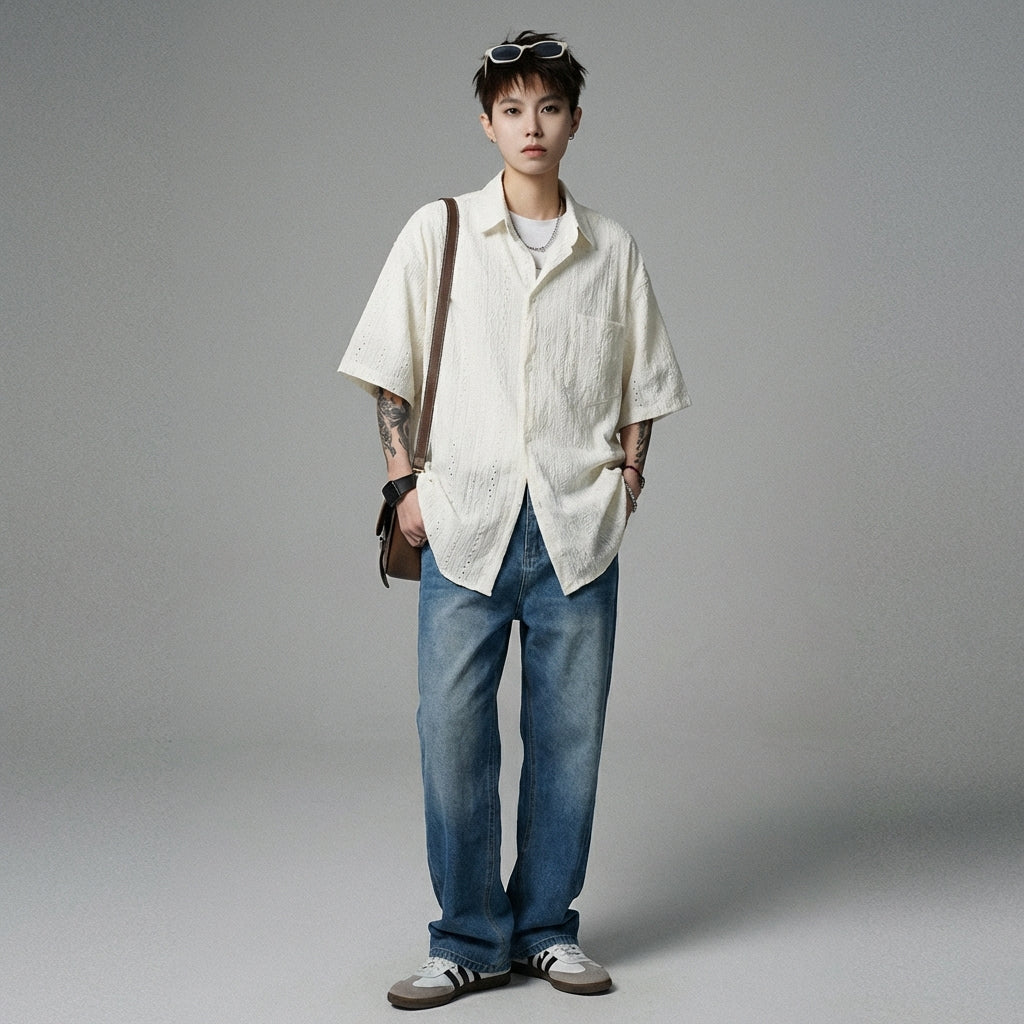 Adotta un look casual e alla moda con questo top a maniche corte e colletto. Perfetto per uno stile urbano e moderno, aggiungerà un tocco di originalità al tuo guardaroba quotidiano! ✨