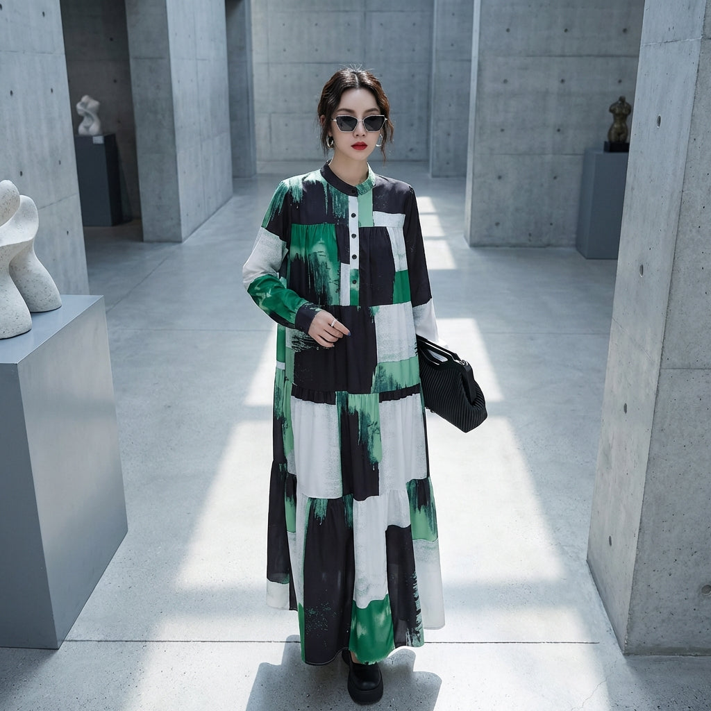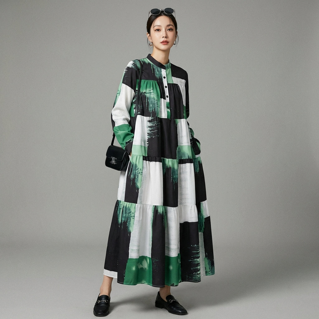 Adotta un look casual e alla moda con il nostro abito lungo stampato a collo alto. Il suo design fluido e il taglio ampio offrono un comfort ottimale pur rimanendo chic. Perfetto per un'allure moderna e rilassata ogni giorno! ✨