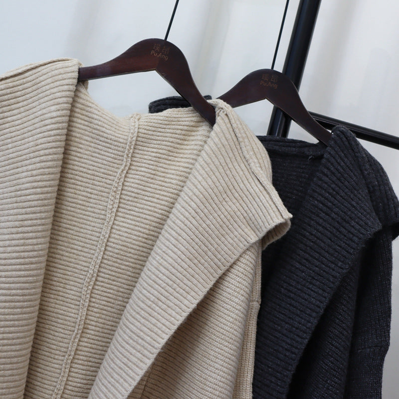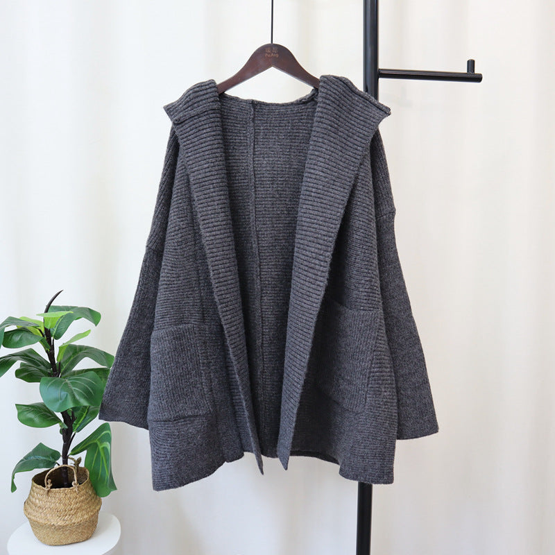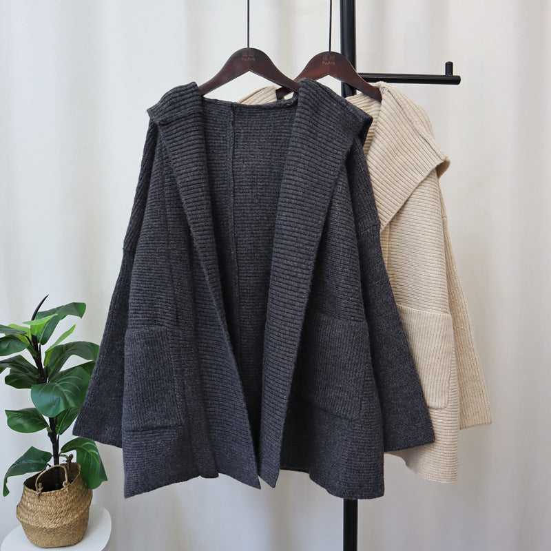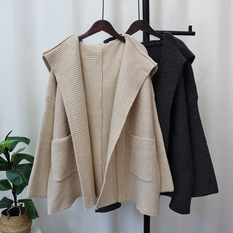 Questo cardigan lavorato a maglia con cappuccio è un'aggiunta essenziale al tuo guardaroba, offrendo sia comfort che stile coreano.