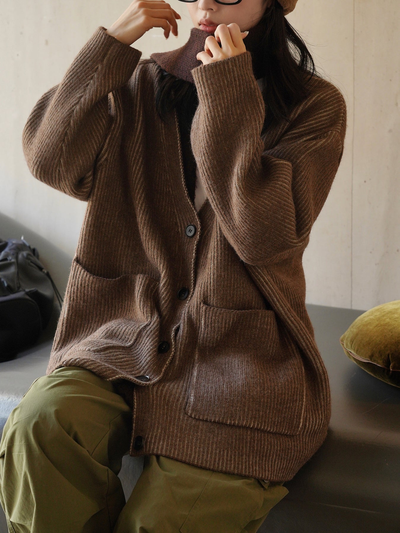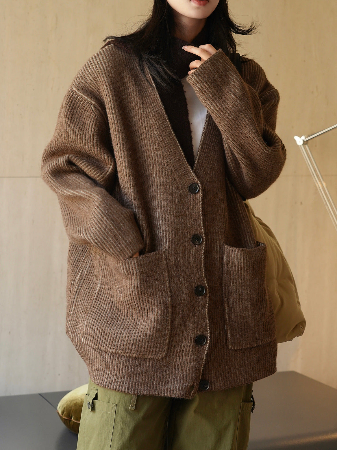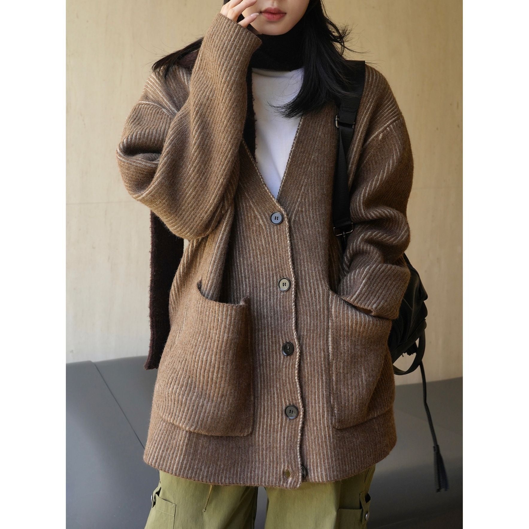 Adotta un look casual e accogliente con il nostro cardigan spesso con scollo a V. Questo modello ampio e spesso è perfetto per le giornate fresche. 🌟