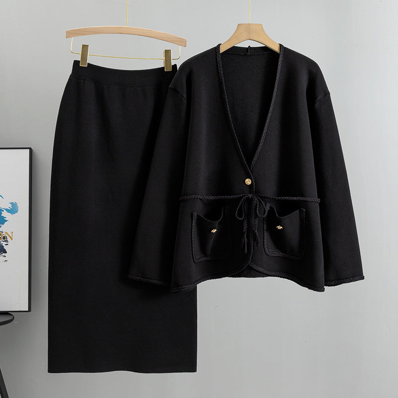 Adotta un look chic e casual con il nostro completo in maglia coreano da donna. Questo set include un maglione ampio e una gonna midi a vita alta, perfetti per uno stile elegante e confortevole allo stesso tempo. 🌸