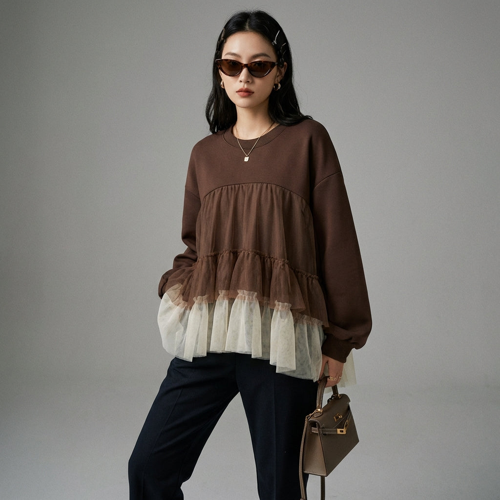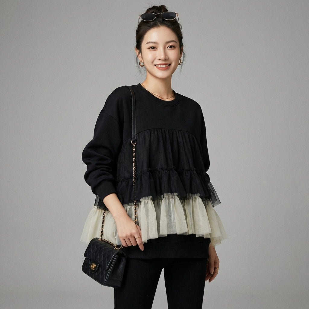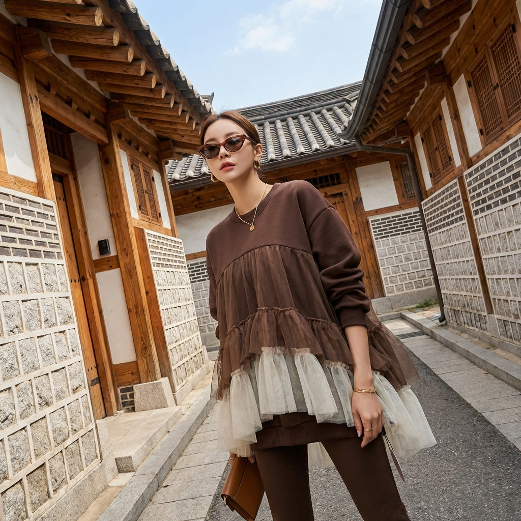 - Stile: Streetwear, K-fashion, Tendenza. Questa felpa incarna lo spirito casual e moderno della moda coreana, con un taglio ampio e dettagli plissettati.