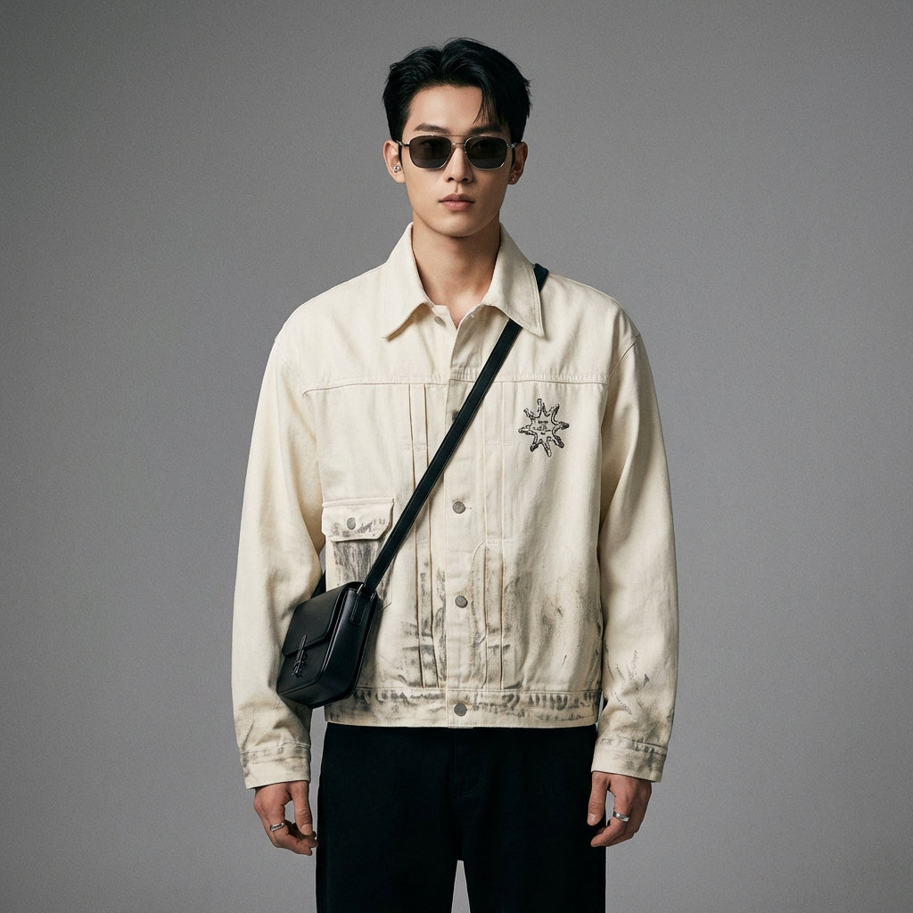 Afferma il tuo stile con la nostra giacca in denim stampata, un must-have per un look streetwear audace. Il suo design ampio e i dettagli invecchiati aggiungono un tocco vintage e di tendenza, perfetto per esprimere la tua personalità! 🎤