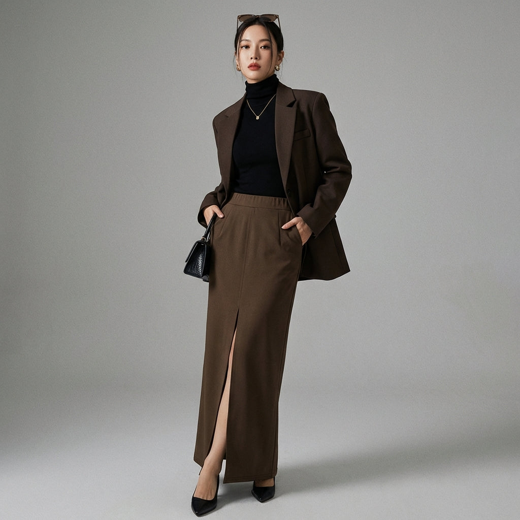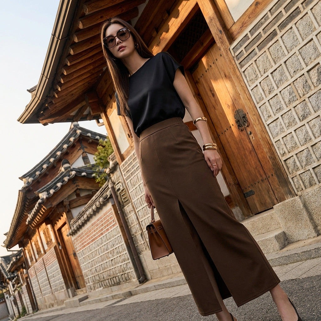 - Stile: Moda coreana, Elegante, Minimalista. Questa gonna incarna l'eleganza discreta e le linee pulite della moda coreana, perfetta per un look curato e di tendenza.