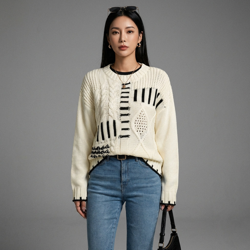 - Stile: Retrò, Casual, Di tendenza. Ispirato ai look vintage, questo maglione si integra perfettamente in uno stile urbano e moderno, ideale per la K-fashion.