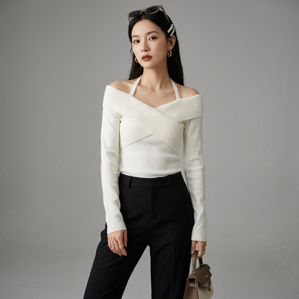 Scopri il nostro maglione asimmetrico in maglia, un capo audace e moderno. Il suo design unico con una spalla scoperta e un collo incrociato annodato aggiunge un tocco di raffinatezza e originalità. Perfetto per chi ama distinguersi con eleganza! ✨