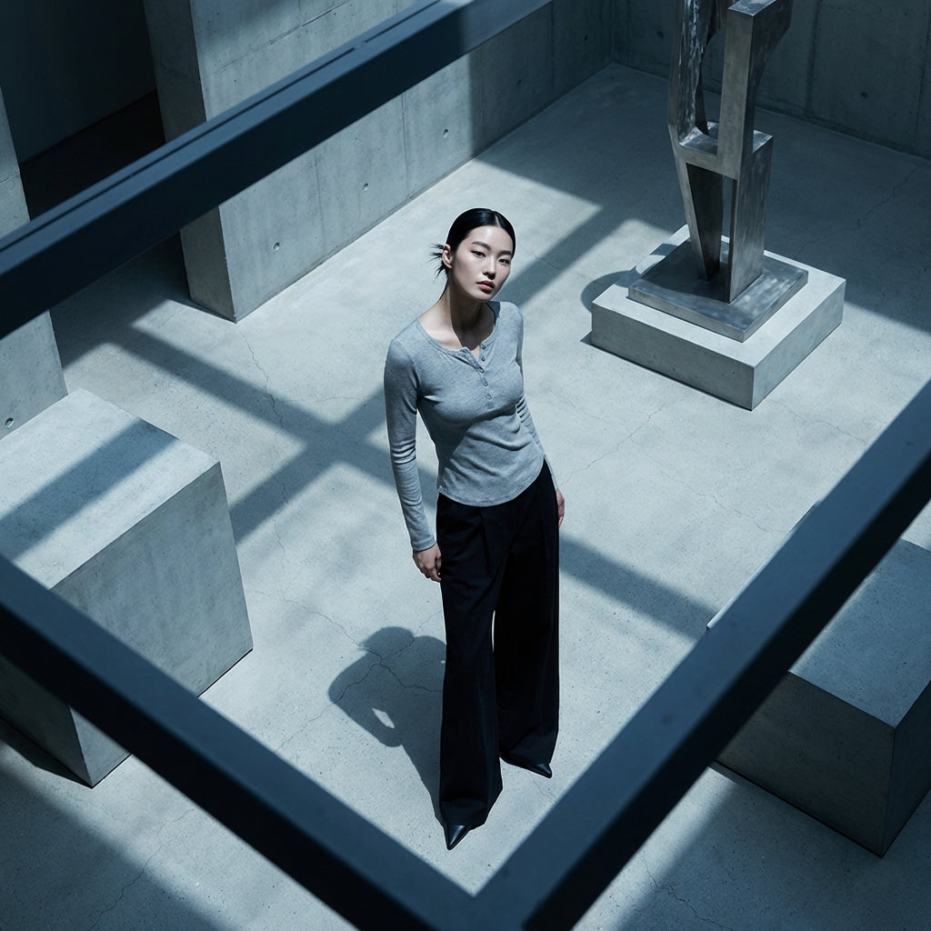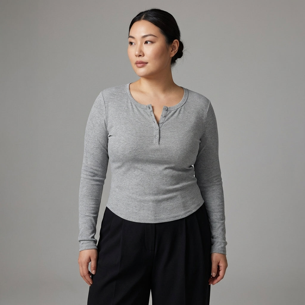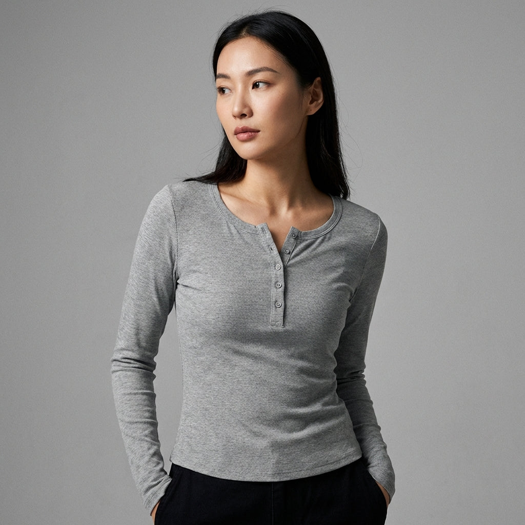 Questo top grigio è un capo essenziale per creare look vari, dal più casual al più sofisticato, rimanendo sempre all'avanguardia della moda coreana.