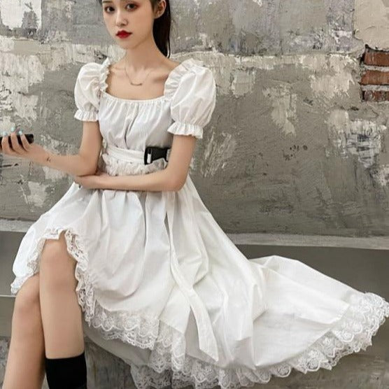 Scopri il nostro abito Street Wear, molto apprezzato dalle giovani ragazze in Corea del Sud. È realizzato in tessuto leggero con cuciture a sbuffo sulle maniche e ricami. Questo abito si allaccia in vita per darti un aspetto slanciato.