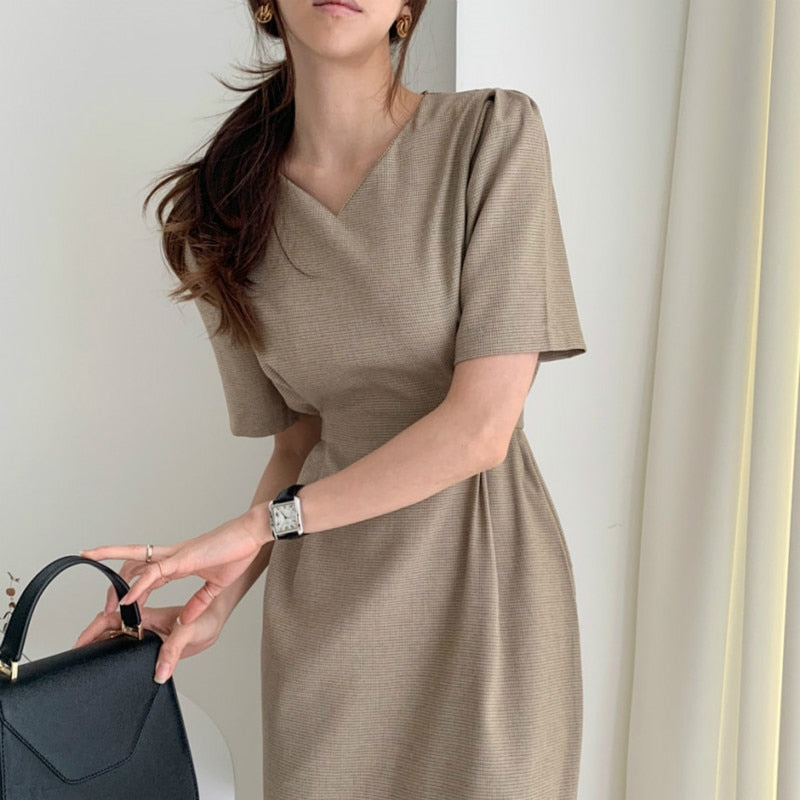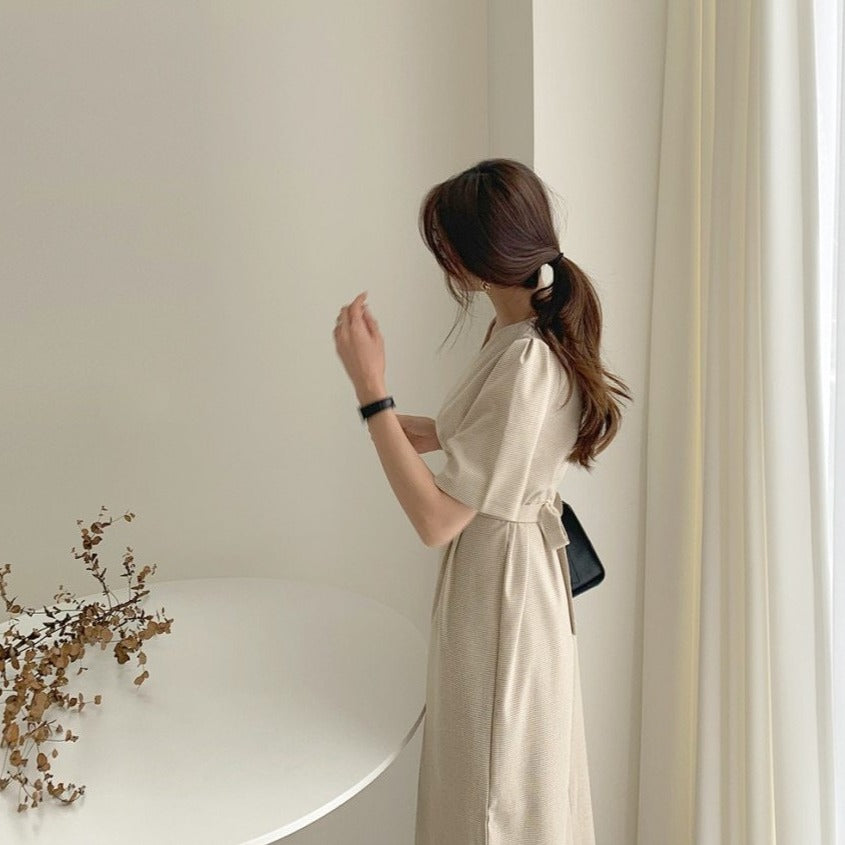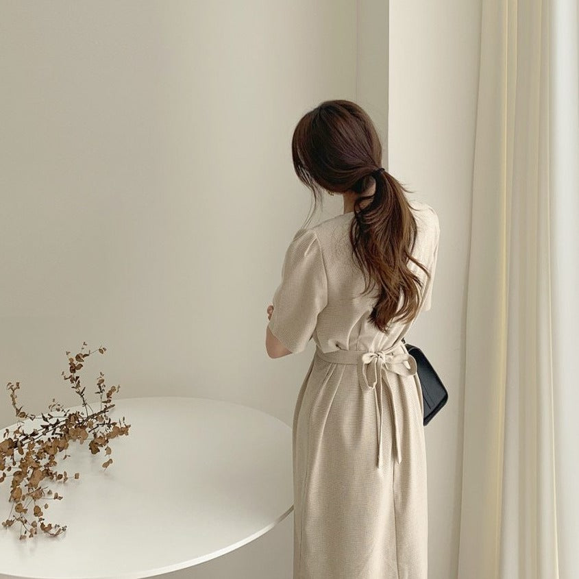 Desideri essere elegante e alla moda? È possibile grazie a questo abito coreano! L'abito eleganza è un abito chiaro e a maniche corte.