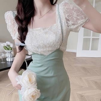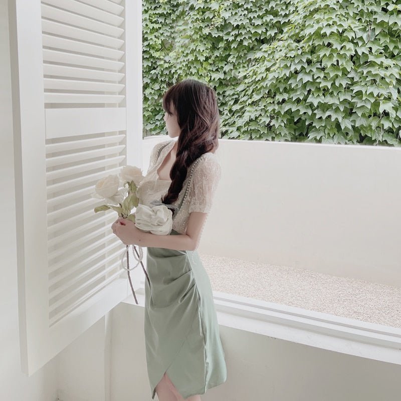 Questo outfit è composto da un top ricamato e una gonna con lunghe bretelle. È un completo perfetto per l'estate in Corea del Sud. La freschezza di questo design vintage è ideale per le donne femminili.