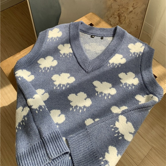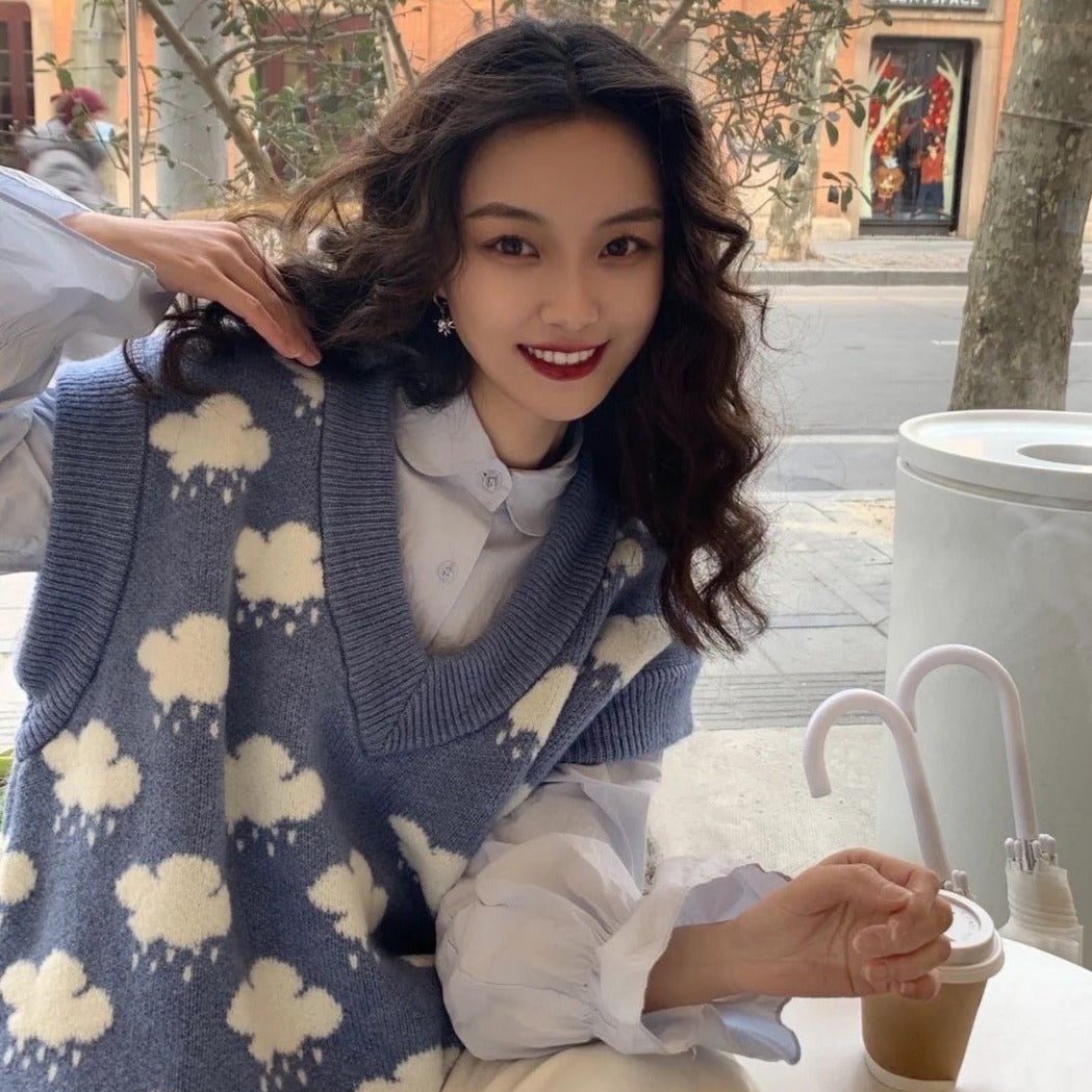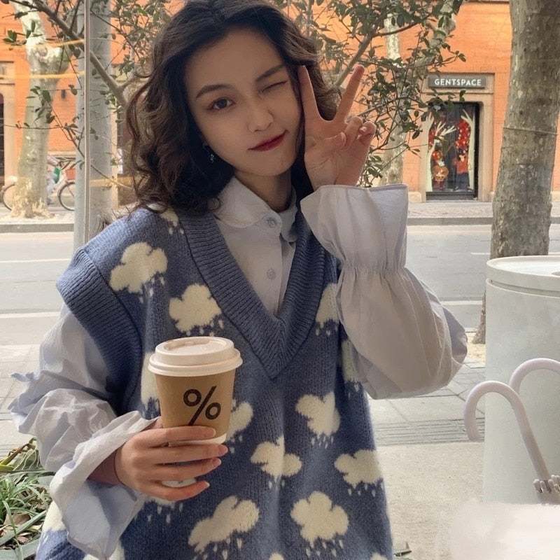 Questo simpatico maglione con nuvole e pioggia è molto alla moda in Corea del Sud. È apprezzato dalle giovani coreane perché è molto comodo e morbido. Il suo design carino rappresenta delle piccole nuvole. È di colore blu e bianco, il che gli conferisce un aspetto insolito.
