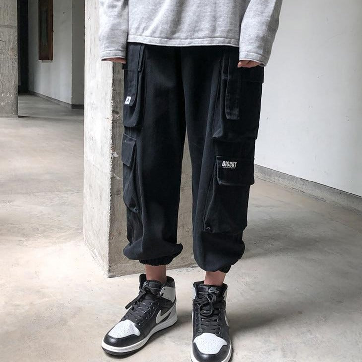 Indossa i pantaloni Cargo con la scritta Disout.