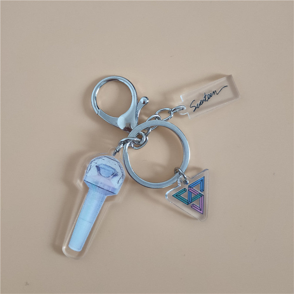 Vuoi portare con te un pezzo del gruppo Seventeen? Ami la musica coreana? Questo piccolo portachiavi con i loghi del gruppo è perfetto per te.