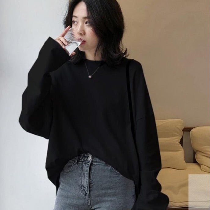 Adotta uno stile potente grazie al taglio di questa T-shirt lunga e larga dalla Corea del Sud. Questa T-shirt comoda è spesso utilizzata per i momenti di relax tra amiche.
