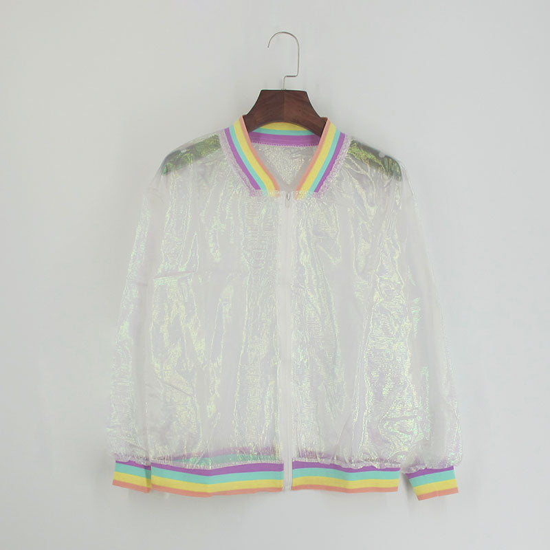 Innamorati della nostra giacca iridescente trasparente, la fusione perfetta tra chic e originalità coreana. Con i suoi riflessi arcobaleno e il taglio confortevole, questo capo è un must-have per un look audace e moderno. Leggera e versatile, si adatta a tutti i tuoi outfit, aggiungendo un tocco di brillantezza unico al tuo stile. 🌈