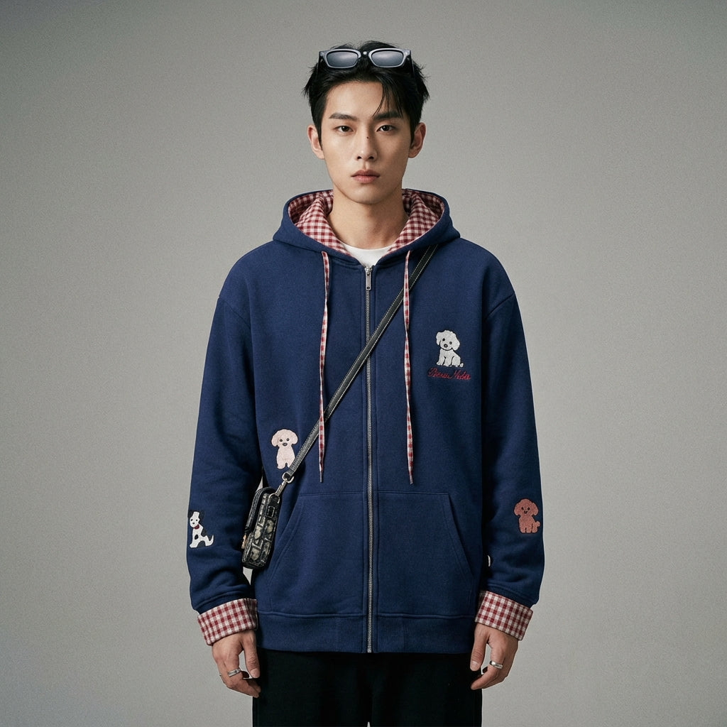 Adotta un look casual e alla moda con il nostro cardigan con cappuccio ricamato, ideale per ogni occasione. Il suo taglio confortevole e il design unico lo rendono un capo irrinunciabile del tuo guardaroba! 🐶