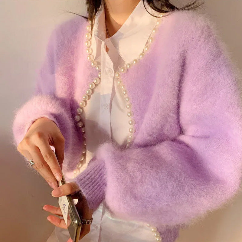 Adotta il fascino e l'eleganza con il nostro cardigan in pelliccia sintetica di visone, impreziosito da bordi perlati. Questo modello di nicchia è perfetto per le stagioni fredde, offrendo comfort e stile sofisticato. 🌟