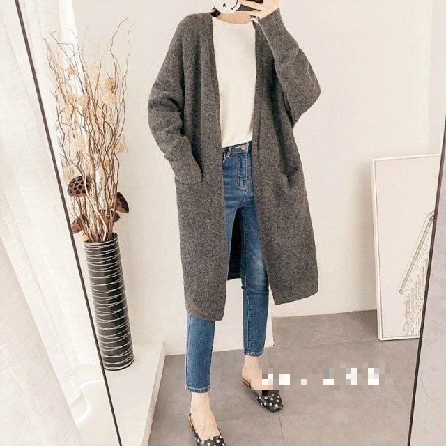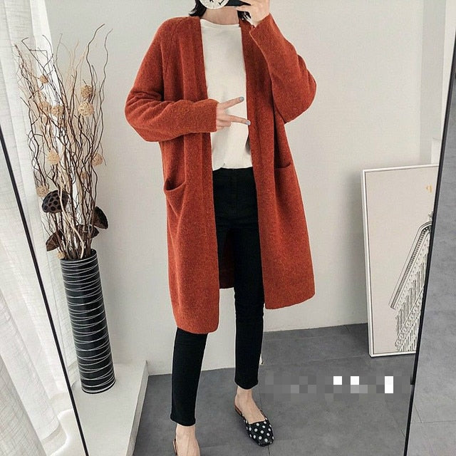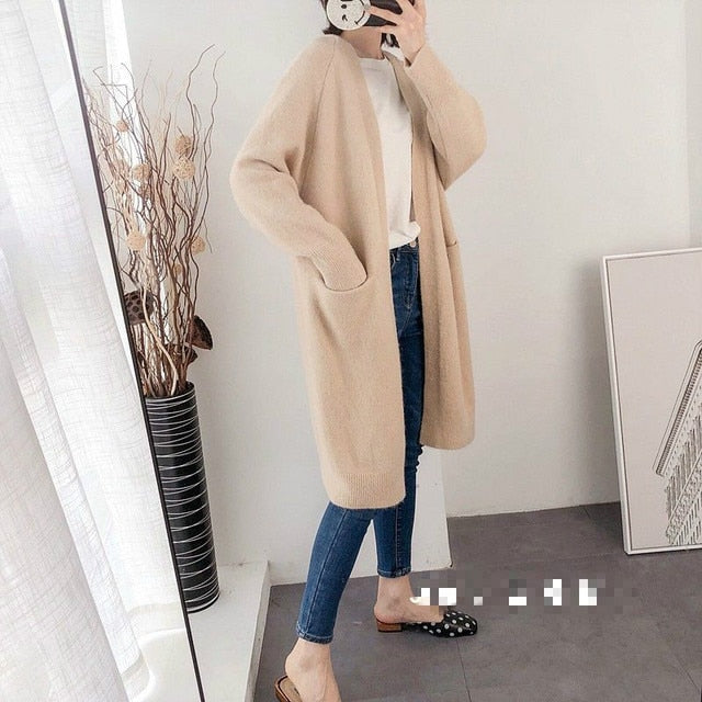 Questa giacca lunga coreana ha un materiale morbido come un cardigan. È ideale per stare al caldo ed essere comodi in ogni circostanza. È una giacca lunga che si indossa bene sia all'interno che all'esterno. È disponibile in diversi colori.