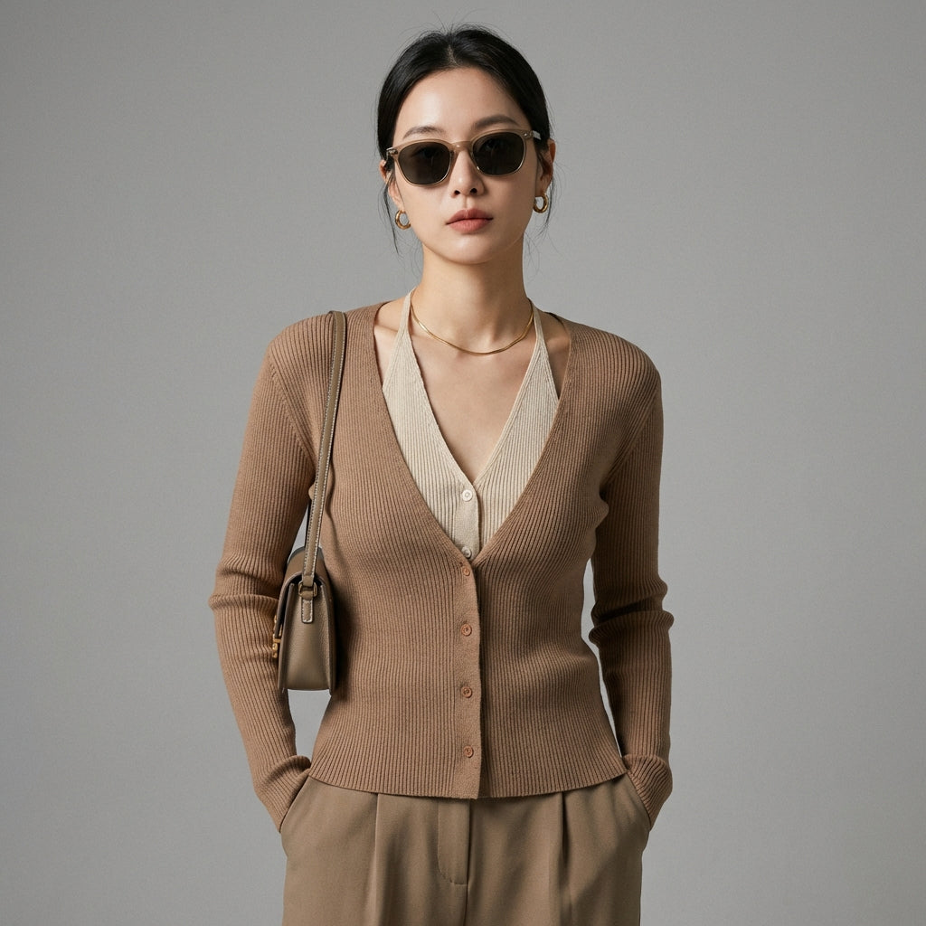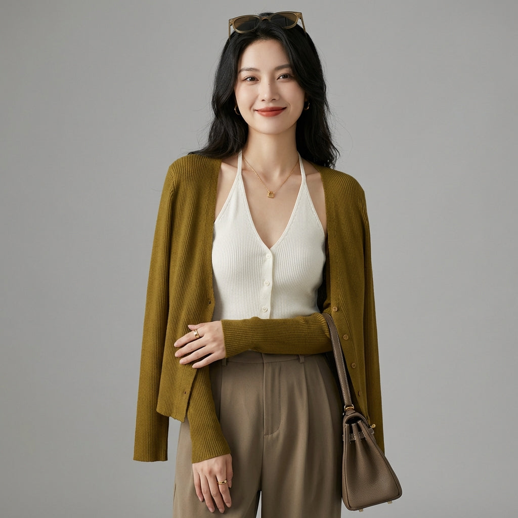 - Stile: Moda coreana, Chic, Minimalista. Questo cardigan incarna l'eleganza discreta e moderna della K-fashion, perfetto per un look curato.