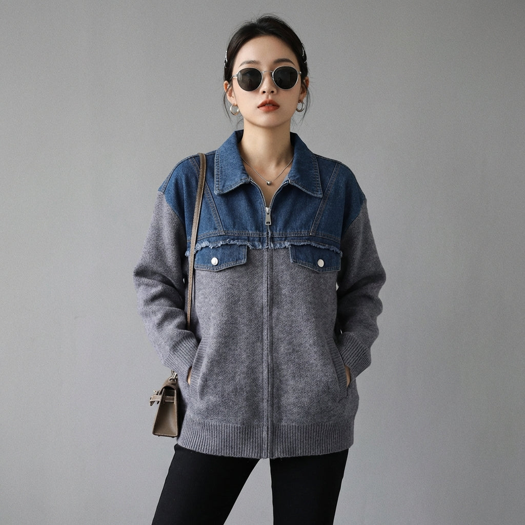 Adotta un look casual e alla moda con il nostro gilet con zip in denim e maglia. Il suo taglio versatile e il suo stile moderno lo rendono un capo irrinunciabile del tuo guardaroba per un tocco casual chic! ✨