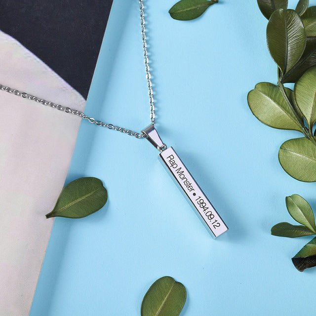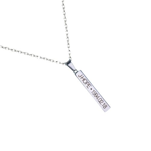 La collana ha un design semplice e molto efficace, si tratta di una barra con inciso il nome del tuo cantante preferito, così come la sua data di nascita.