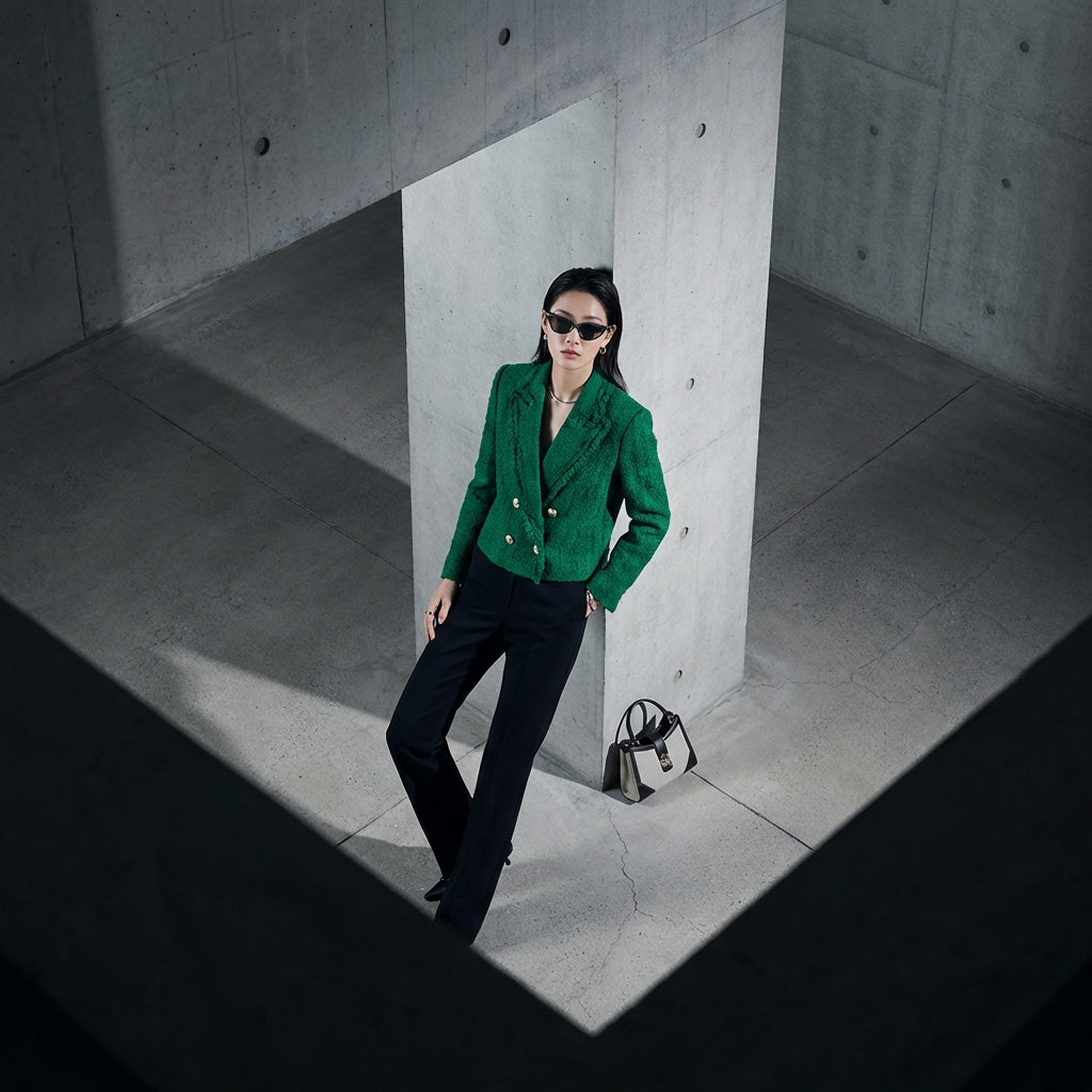 - Tipo: Corto, Doppio Petto. Un taglio moderno che valorizza la silhouette, con dettagli curati.
