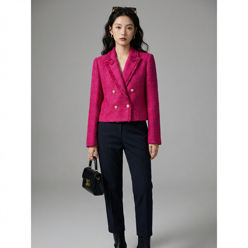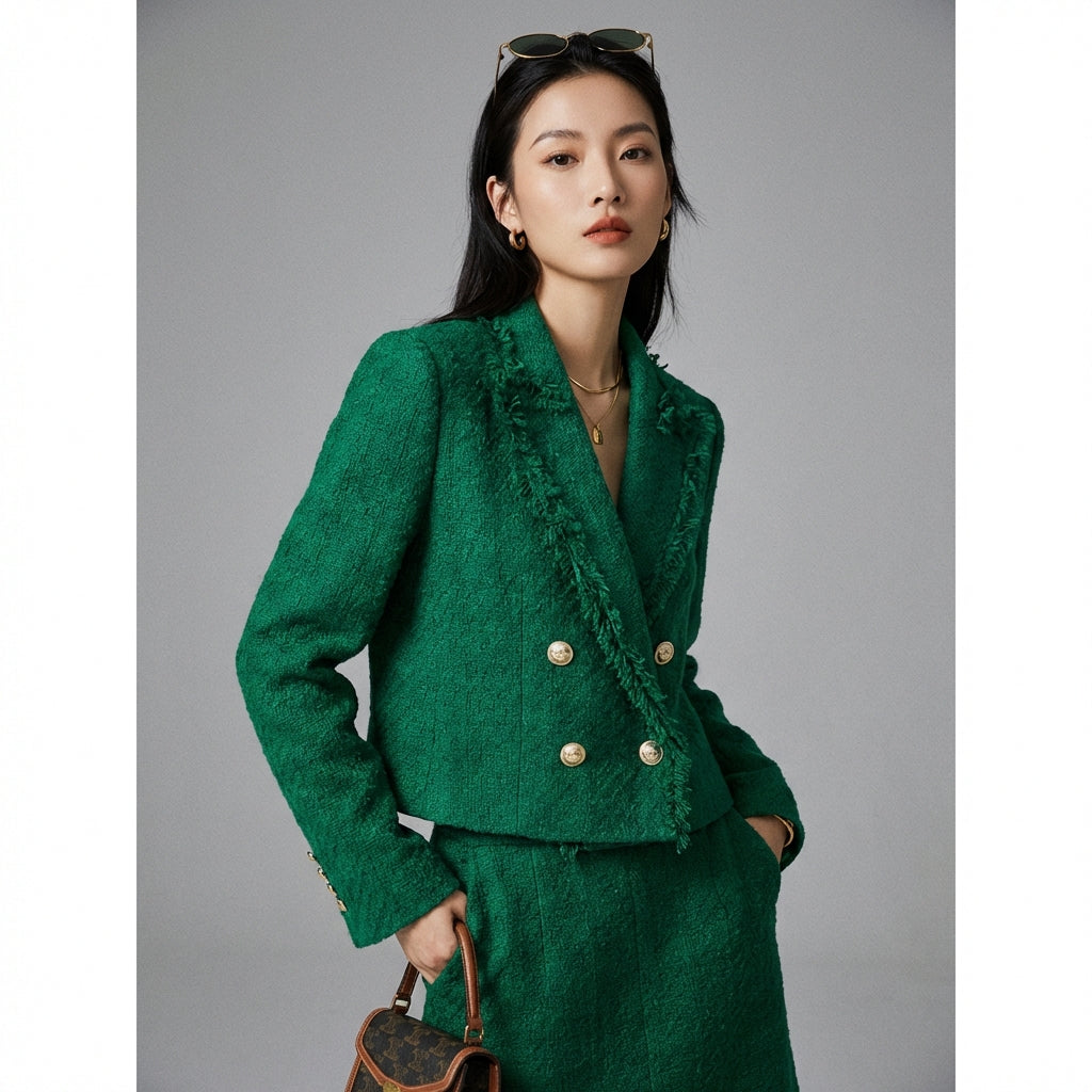 Adotta un look sofisticato e giovane con il nostro blazer corto sfrangiato, un capo irrinunciabile per un outfit chic e di tendenza. Perfetto per elevare qualsiasi abbigliamento con un tocco di eleganza moderna! 💚
