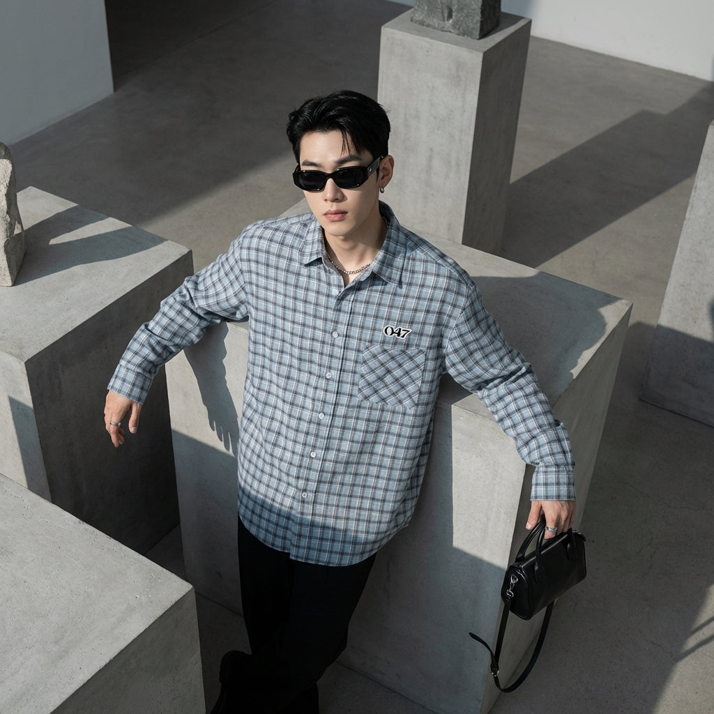 Chemise oversize à carreaux style streetwear - Koreanxwear