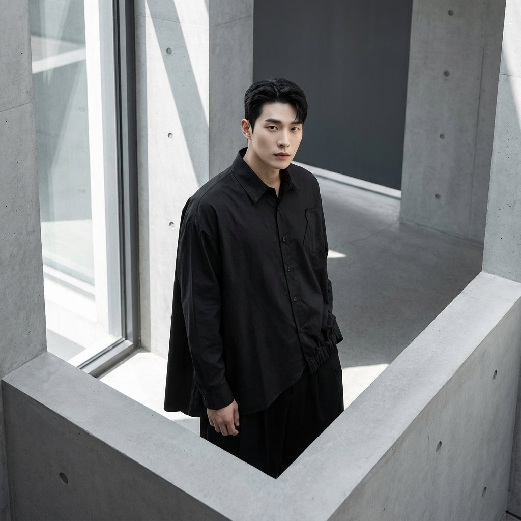• Stile: Streetwear, Minimalista, K-fashion. Questa camicia incarna l'eleganza casual della moda coreana, ideale per un look urbano e di tendenza.