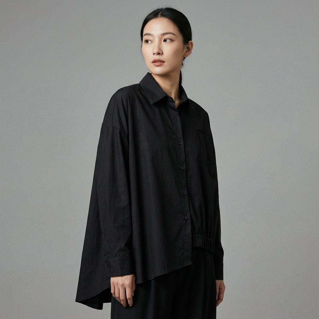 Chemise oversize noire asymétrique en coton pur - Koreanxwear - Taille one size