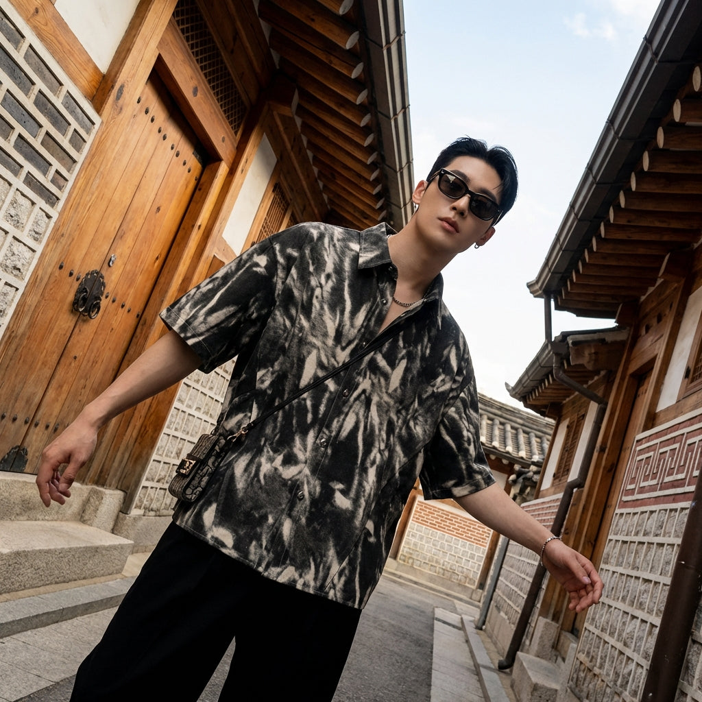- Stile: Streetwear, K-fashion, Casual, Urbano. Questa camicia incarna lo spirito libero e alla moda della moda coreana, perfetta per un look moderno.